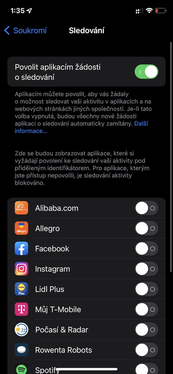 Udělit či neudělit aplikaci souhlas s vaším sledováním můžete, jak už jsme si řekli výše, po prvním spuštění nové aplikace. Dobrou zprávou ale je, že veškeré tyto přístupy můžete jednoduše spravovat i zpětně. To se hodí tehdy, pokud jste se například při udělování souhlasu překlikli, popřípadě pokud jste jednoduše změnili názor. Stačí, abyste přešli do Nastavení → Soukromí → Sledování. Zde už se vám níže zobrazí seznam aplikací, které žádaly o přístup k vašim datům – právě zde je možné jednoduše přepínačem přístup zpětně povolit či odepřít. A pokud byste chtěli zobrazování žádostí o sledování kompletně zakázat, čímž bude automaticky přístup k vaším datům bez otázek odepřen, tak stačí deaktivovat nahoře funkci Povolit aplikacím žádosti o sledování.