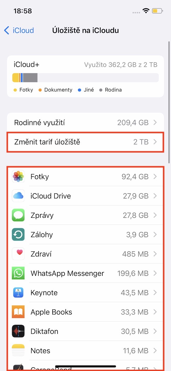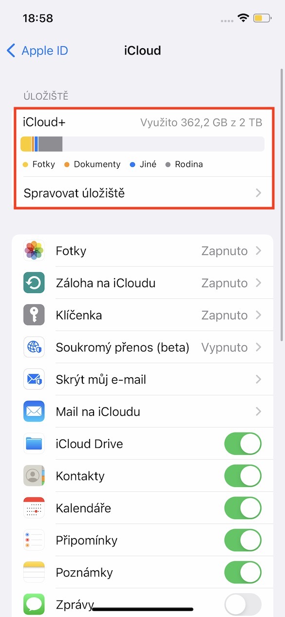 iCloud je samozřejmě zpoplatněná služba, tedy pokud pomineme bezplatný a prakticky bezvýznamný plán s 5 GB zdarma. Aby se mohly fotografie na iCloud uložit, tak je samozřejmě nutné, aby na něm bylo k dispozici dostatek místa. To můžete zjistit v Nastavení → váš profil → iCloud, kde se vám zobrazí graf. Pokud místo není, tak můžete v sekci Spravovat úložiště některá data vymazat, popřípadě zde můžete klepnout na Změnit tarif úložiště a pořídit si předplatné s větším úložištěm.