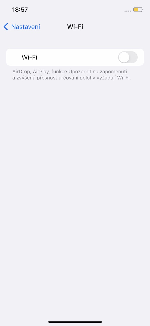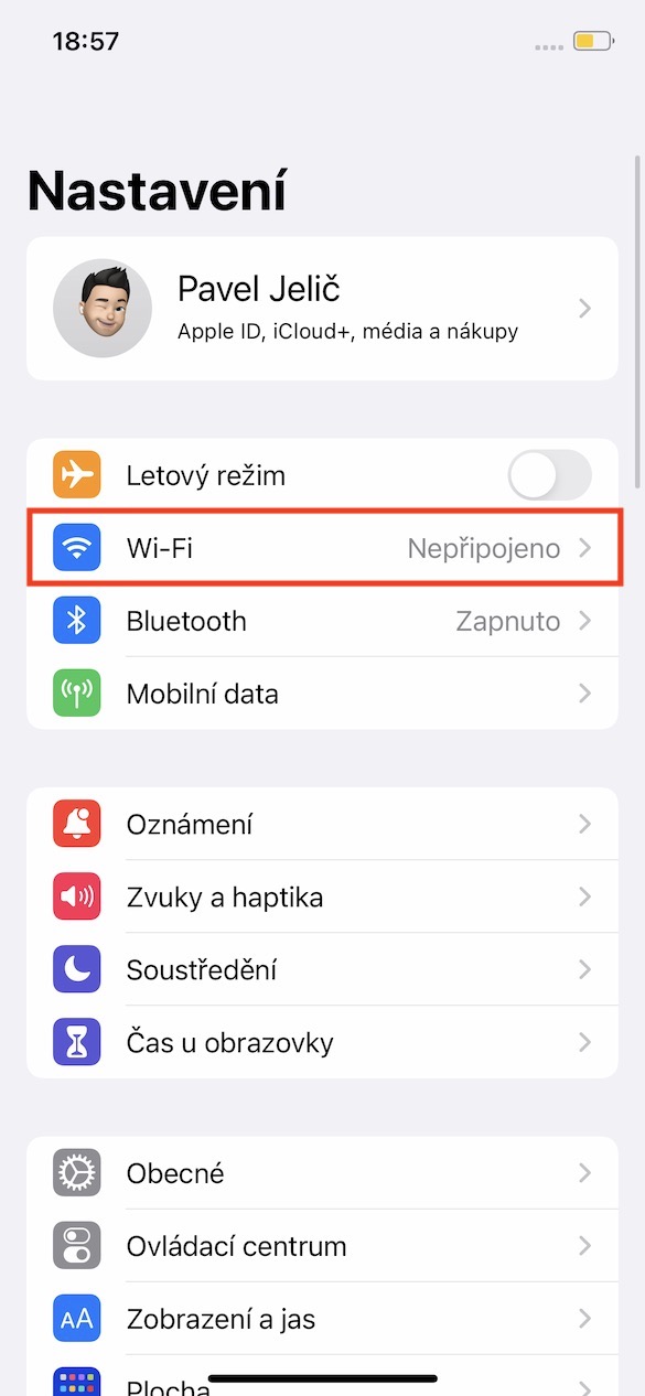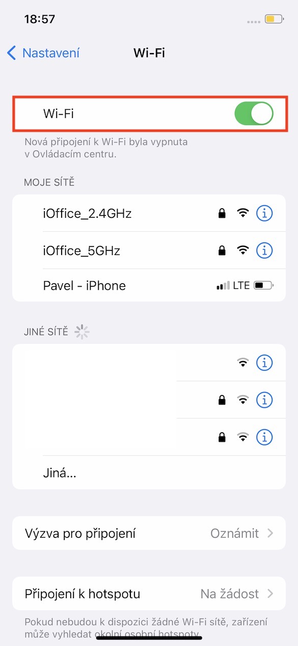Samozřejmě pro započetí synchronizace musíte být připojeni k internetu, ideálně k Wi-Fi. Přesvědčte se tedy o tom, že jste připojeni k rychlé a stabilní Wi-Fi síti, a že jste v dosahu. Pokud Wi-Fi síť nefunguje ideálně, tak systém synchronizaci fotek na iCloud vůbec nespustí. V některých případech každopádně může pomoci vypnutí a opětovné zapnutí Wi-Fi, čehož docílíte skrze ovládací centrum, popřípadě v Nastavení → Wi-Fi.