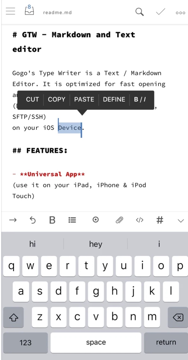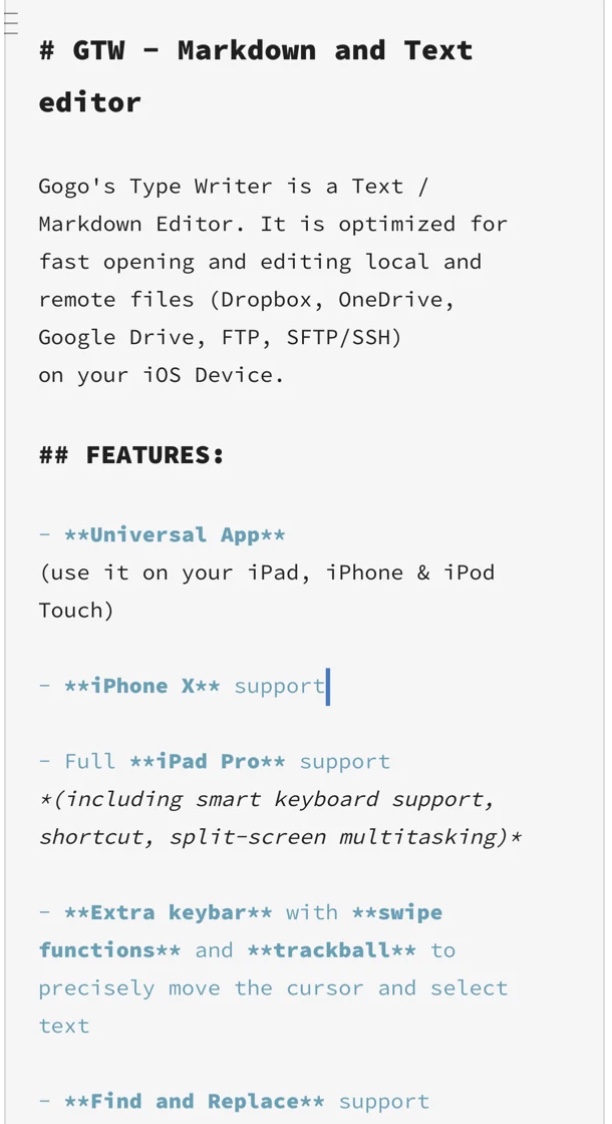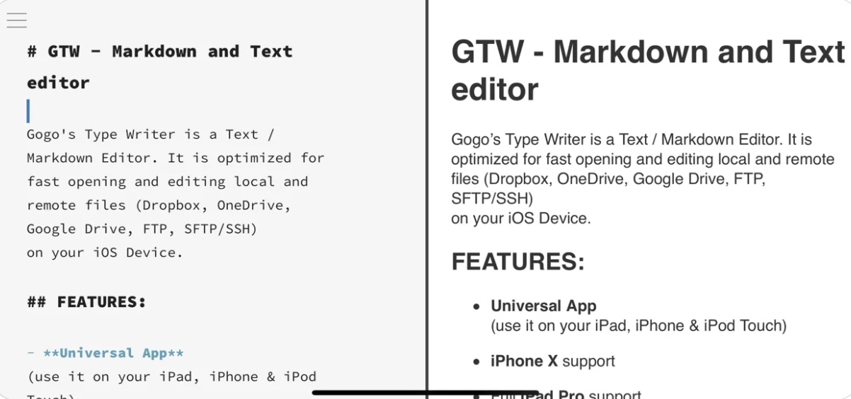 Jak již samotný název napovídá, aplikace GTW – Markdown & Text Editor vám dokáže posloužit jakožto textový editor pro zapisování nejrůznějších poznámek a dokumentů. Veškeré vaše zápisy následně můžete automaticky zálohovat prostřednictvím cloudových služeb.