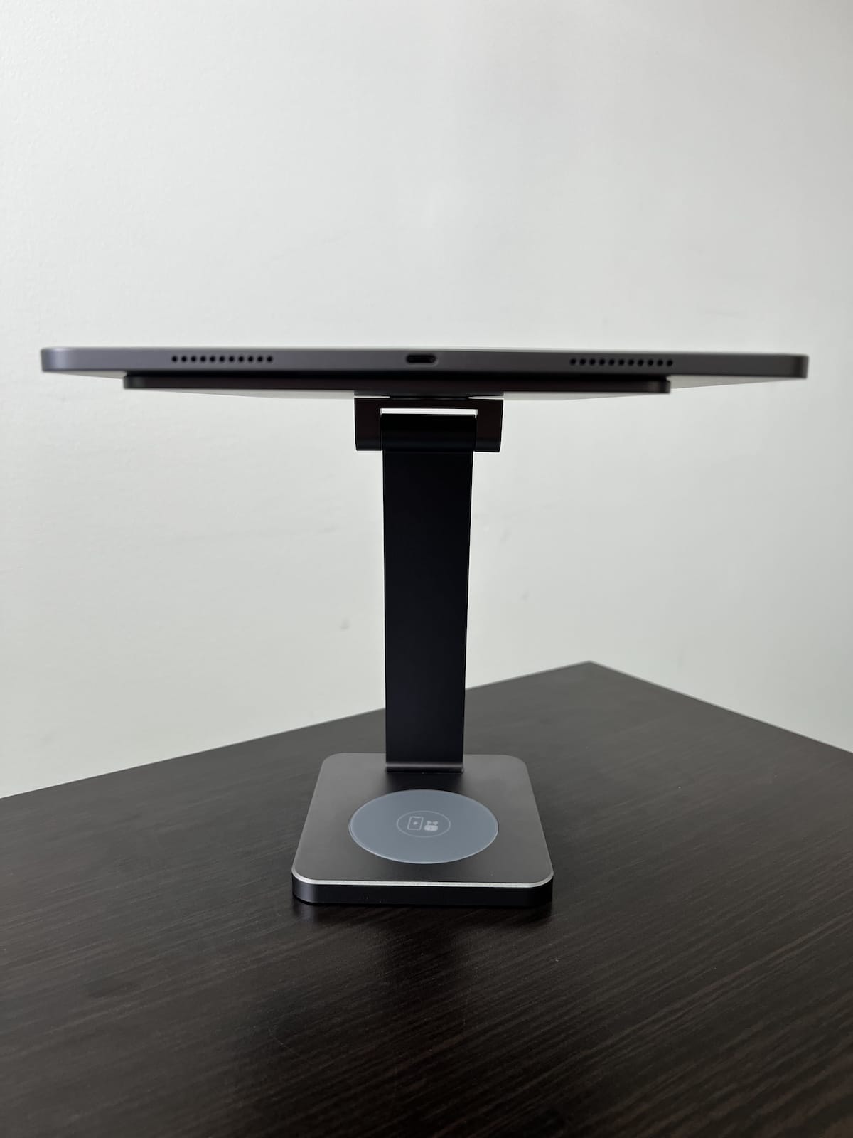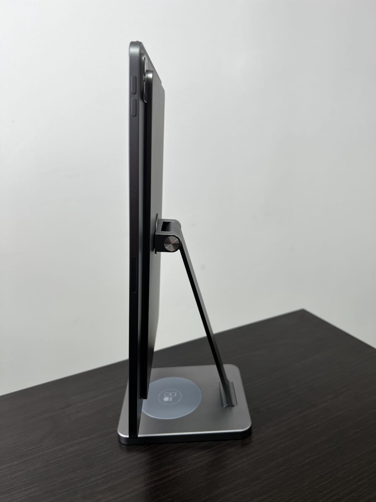 Jednoznačně nejdůležitější aspekt každého produktu je jeho funkčnost. Abych byl zcela upřímný, musím uznat, že ta je u tohoto magnetického stojanu na iPad naprosto špičková. Samotný tablet se ke stojanu velice snadno přichytí za pomoci silných magnetů, u kterých nemusíme mít strach, že by zařízení neudržely. Jak už jsem zároveň zmínil výše, za obrovské plus vnímám ošetření stojanu ochrannou vrstvou proti poškrábání, přičemž s tím samým můžeme počítat i v případě základny, respektive v místě bezdrátové nabíječky. V tomto ohledu si uznání zaslouží i protiskluzová podložka. Ta zajišťuje, aby se nám produkt skutečně nikterak nepohnul a stabilně držel na jediném místě, což plní na výbornou. Za nejlepší část produktu bych ale označil zadní kloub stojanu. S jeho pomocí lze iPad naklonit přesně tak, jak v dané chvíli potřebujeme – ať už na výšku či vodorovně – vždy záleží na našich vlastních potřebách a preferencích.