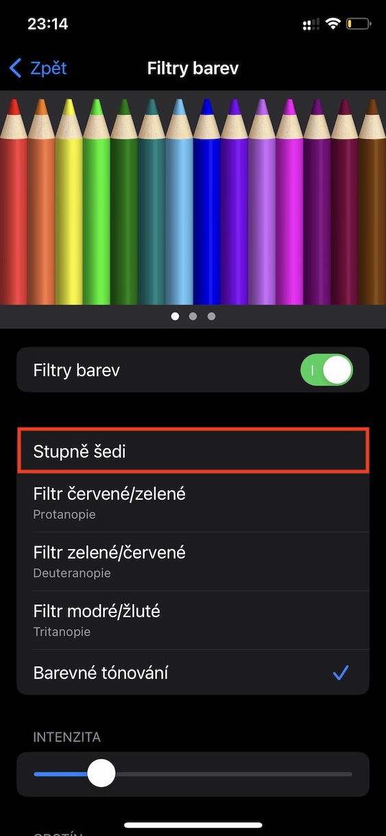 - Zde už jen stačí klepnutím zaškrtnout možnost Filtry barev.