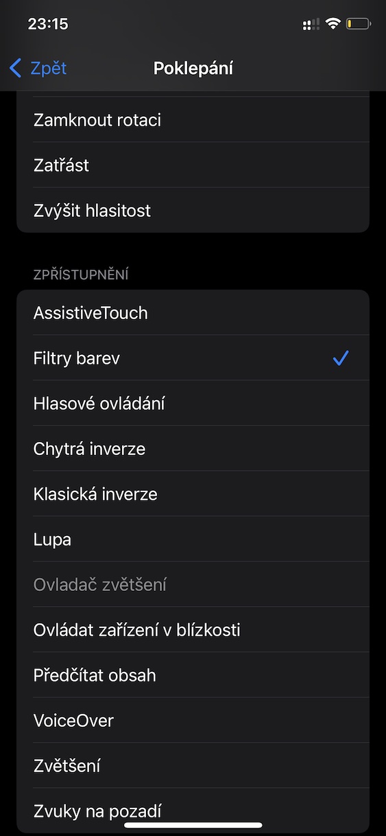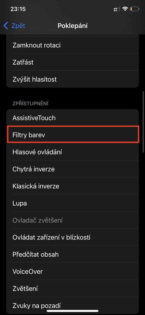 - Pak už jen stačí podle výběru dvakrát nebo třikrát poklepat na záda iPhonu pro (de)aktivaci filtru.