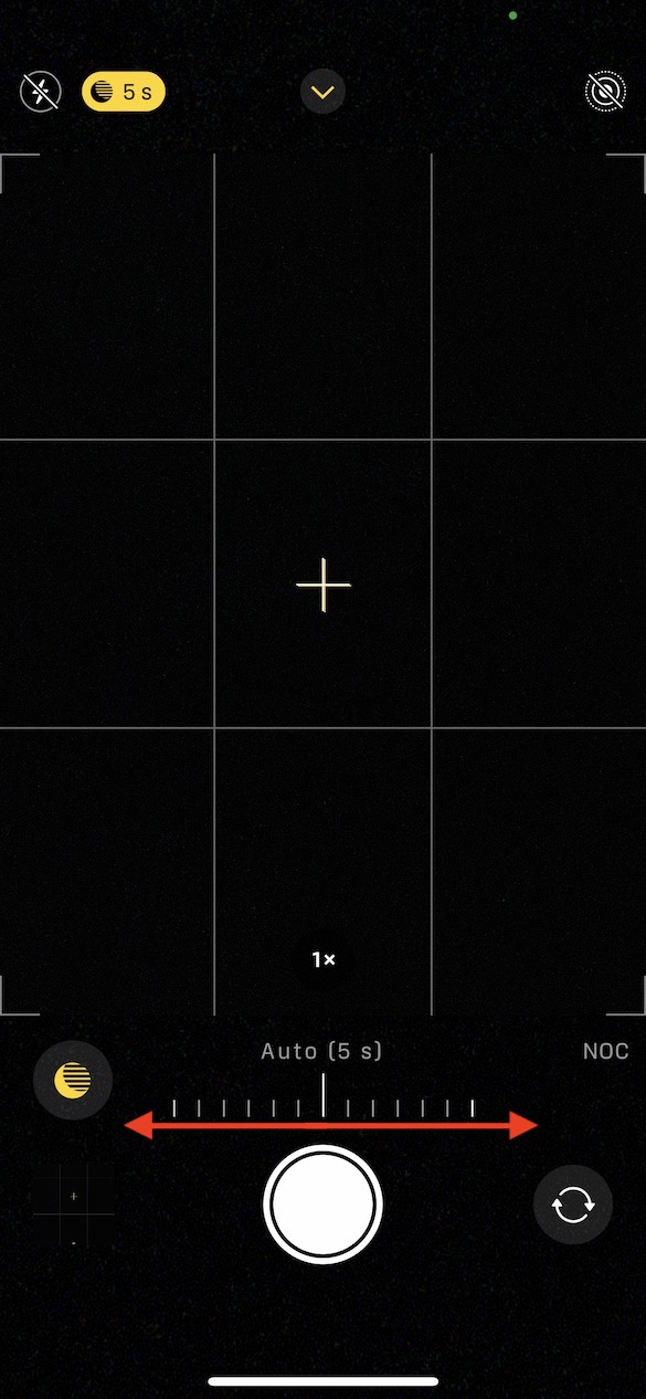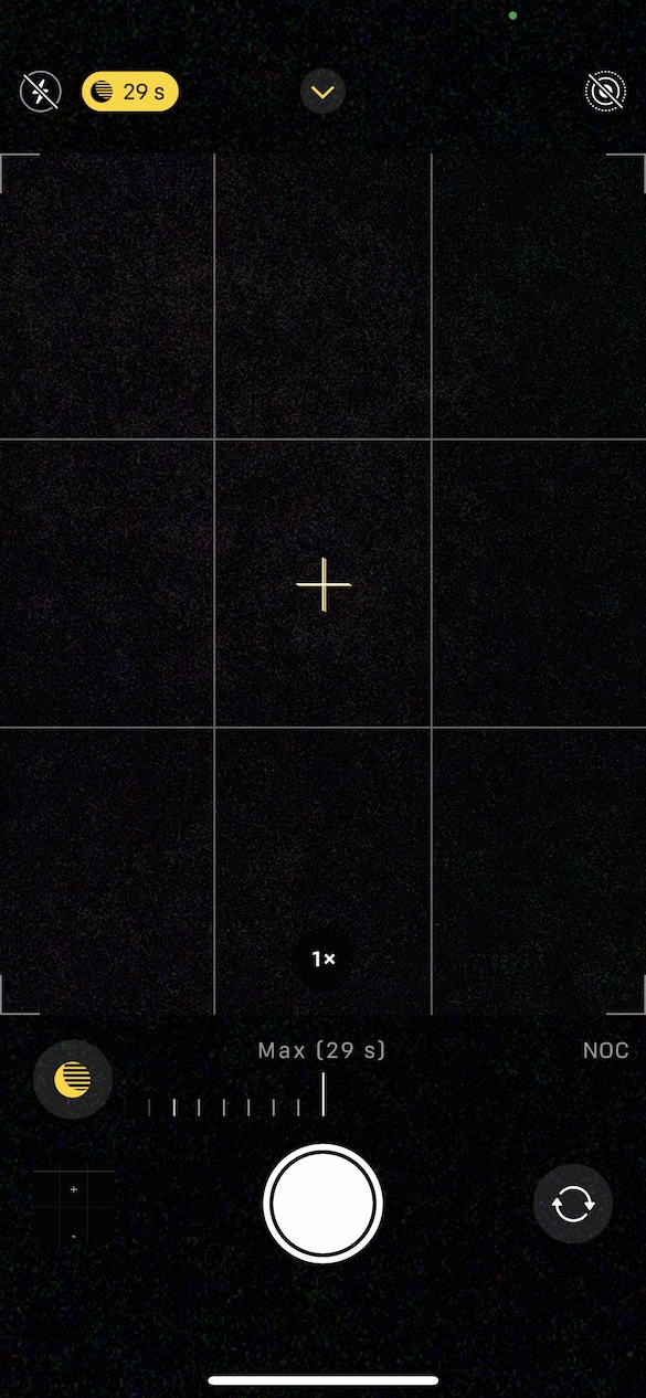 Jak už jsem zmínil, tak se noční režim dokáže aktivovat automaticky v případě, že systém zjistí, že je okolní světlo k pořízení klasické fotografie nedostačující. Následně dojde k automatickému určení času závěrky a kompletnímu nastavení fotoaparátu tak, aby to pro uživatele bylo nejjednodušší a nemusel nic měnit. V některých případech se systém trefí a provede správné nastavení, v jiných zase nikoliv. Pokud už jste ve focení sběhlí, tak byste měli vědět o tom, že si ve Fotoaparátu můžete čas závěrky při focení v nočním režimu nastavit ručně. Nejedná se o nic složitého – po aktivaci nočního režimu klepněte na jeho ikonu s nastaveným časem uzávěrky vlevo nahoře a nakonec si níže pomocí posuvníku čas závěrky ručně nastavte.