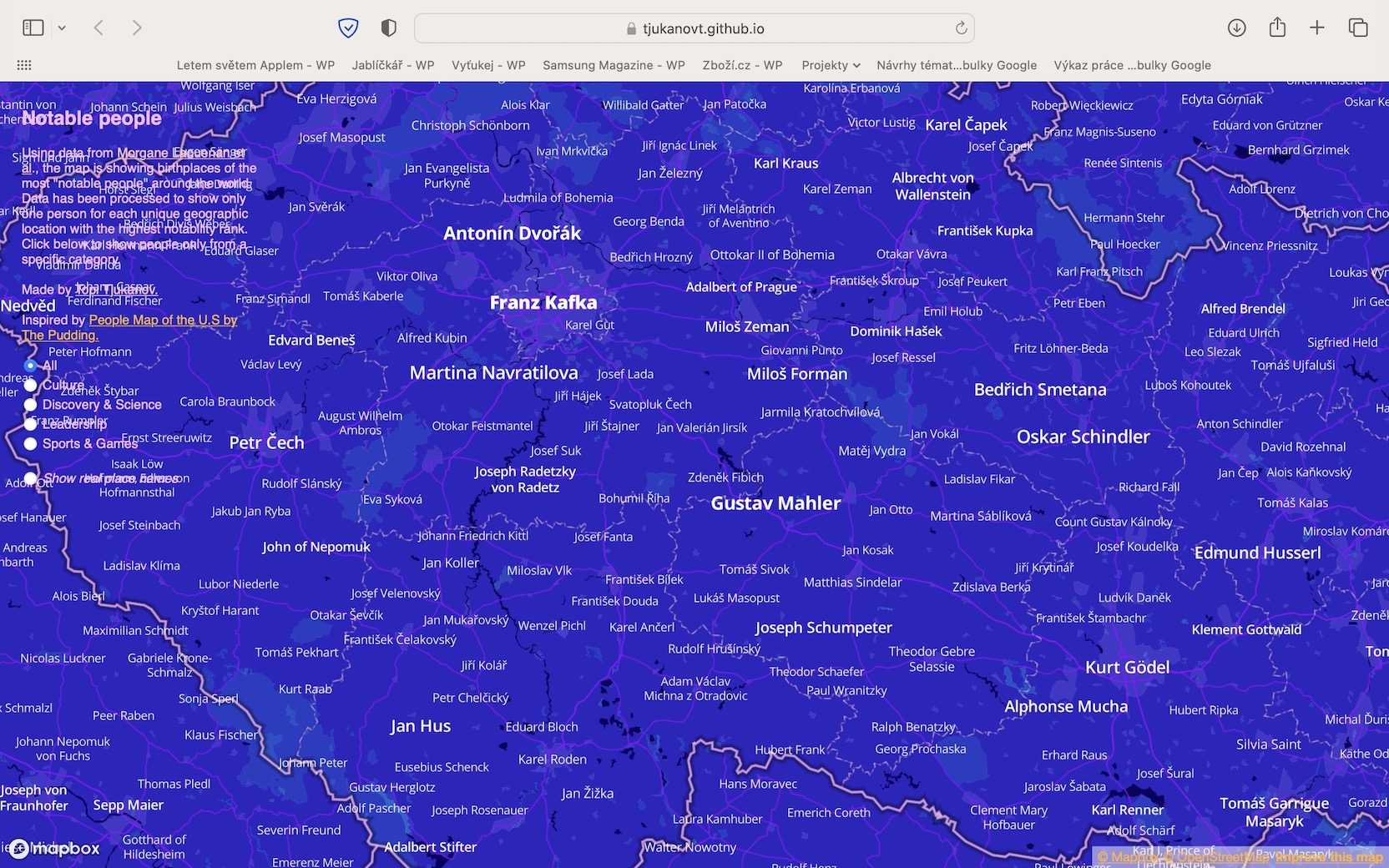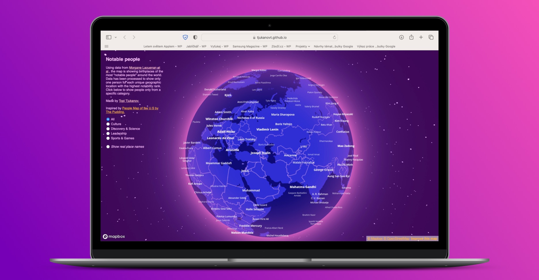 Aplikace, která vám dokáže nejznámější lidi (nejen) z vašeho okolí zobrazit, nese jednoduchý název Notable People. Tato webová aplikace, která je samozřejmě k dispozici zcela zdarma, využívá data ze speciální databáze nejvýznamnějších lidí od roku 3500 př. n. l. až do roku 2018 n. l. Veškerá data z této databáze byla upravena tak, aby vždy zobrazila jediného a nejvýznamnějšího člověka z určitého místa. V rámci Notable People se před vámi zobrazí planeta Země s již několika vyobrazenými jmény pro určité státy. Čím víc pak budete planetu přibližovat, tak se vám zobrazí další a další jména, až se dostanete na jednotlivá města.