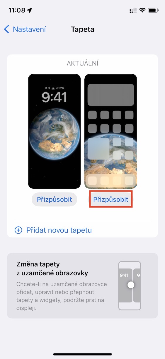 - Následně si vyberte, zdali chcete přizpůsobit aktuální tapetu, anebo přidat novou.