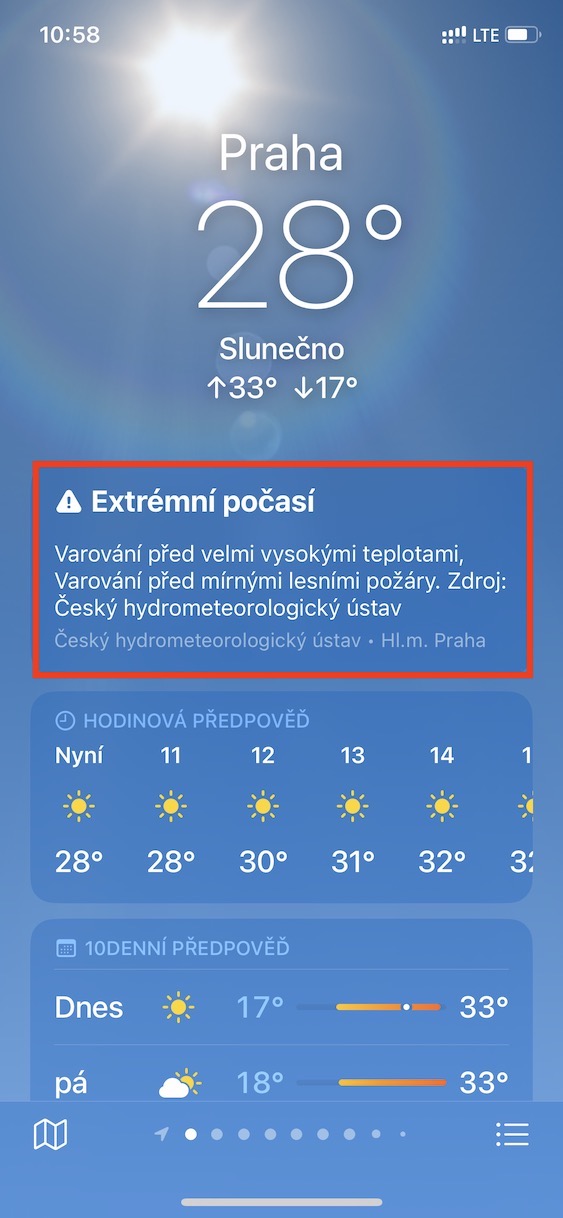 Součástí nejnovějších operačních systémů iOS a iPadOS 16, macOS 13 Ventura a watchOS 9, které jsou stále k dispozici pouze v rámci beta verzí, je nespočet různých novinek a skvělých vylepšení. Velkého přepracování se dočkala například aplikace Počasí, ve které se nově zobrazují podrobné informace, a to v přehledné a jednoduché formě. Nedílnou součástí aplikací pro počasí jsou samozřejmě také výstrahy, které nás mohou informovat o určitých formách extrémního počasí – může se jednat o silné bouřky, možnosti požárů, krupobití, vydatné deště a další.