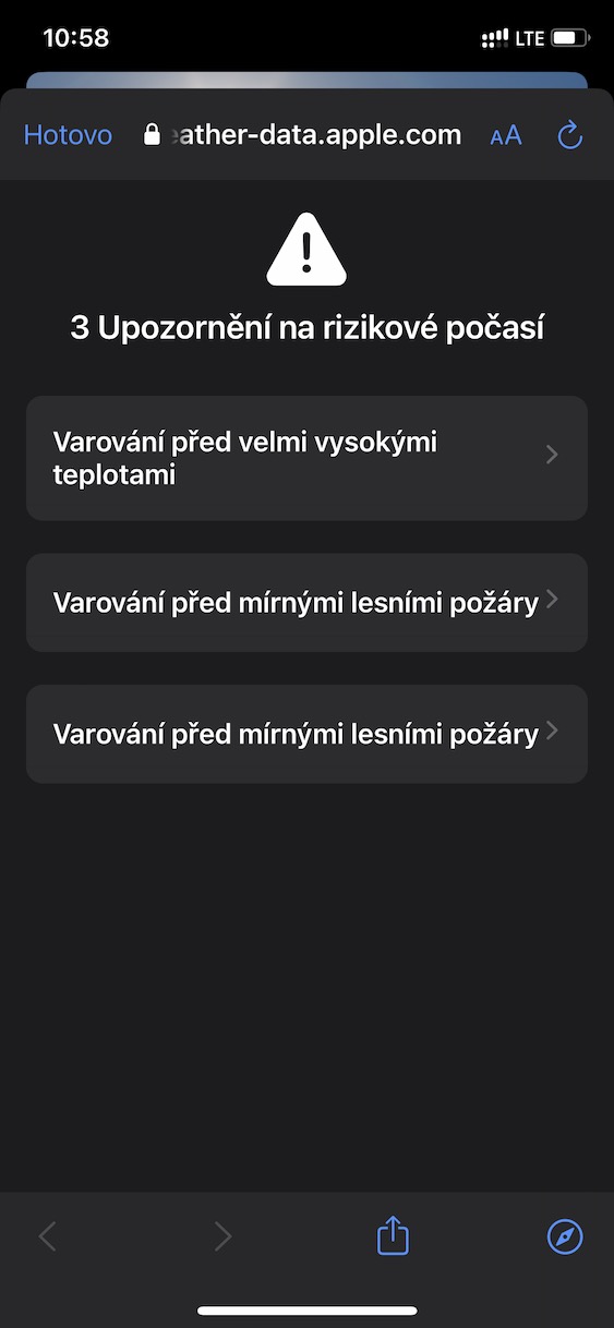 Už jsme si ukázali, jakým způsobem si v Počasí můžete nechat aktivovat upozornění na extrémní počasí. Je ale nutné zmínit, že v jednu chvíli může být na konkrétním místě aktivních hned několik výstrah, o kterých nemusíte vědět. Naštěstí i na tohle Apple myslel, a tak dal uživatelům možnost pro zobrazení všech aktuálních výstrah počasí. Pokud byste je chtěli zobrazit, stačí postupovat následovně: