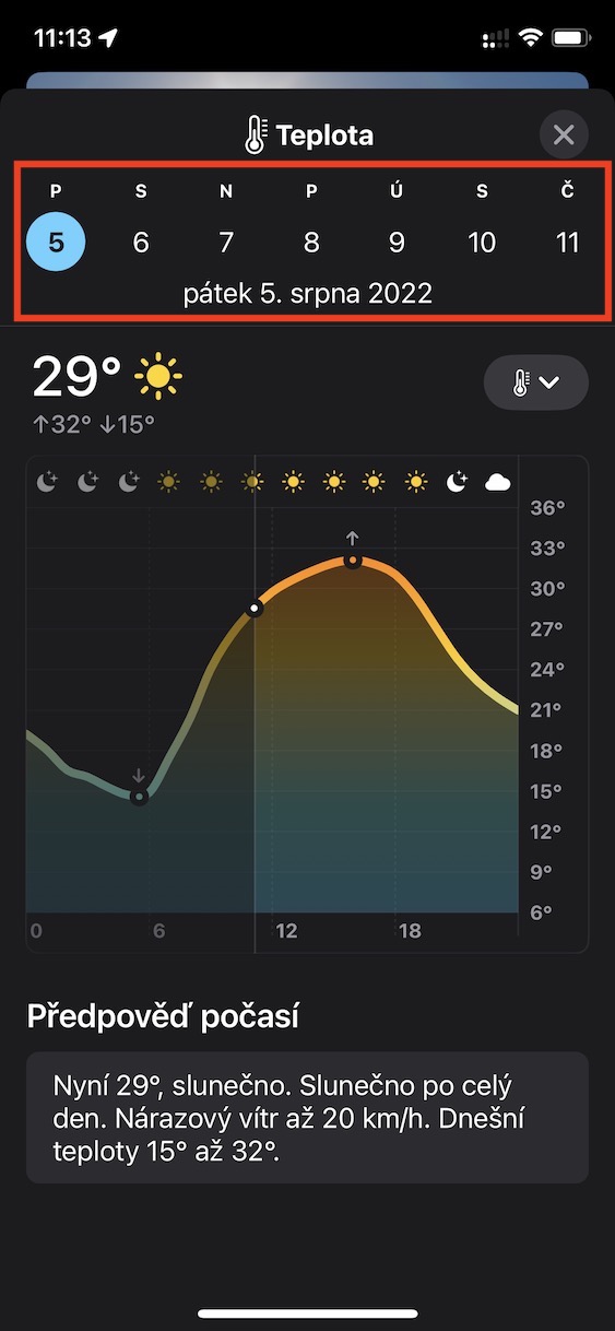 iOS 16: Jak v Počasí zobrazit detailní 10denní předpověď