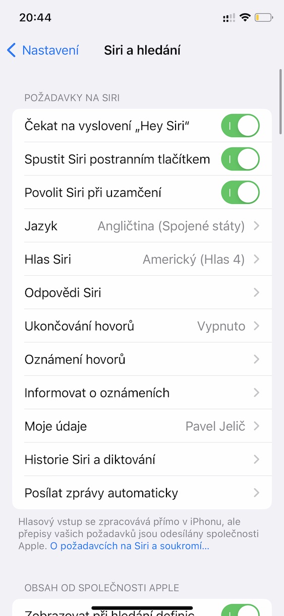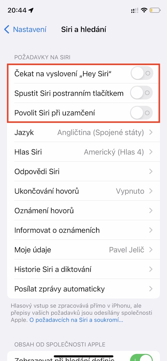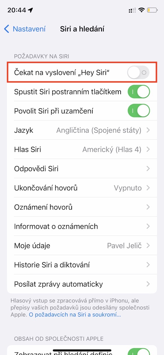 Pokud na vašem iPhonu aktivujete Siri a funkci vyvolání pomocí Hey Siri, tak je nutné projít průvodcem,  v rámci kterého musíte říct několik vět, díky kterým bude Siri schopna rozpoznat váš hlas. Jestliže vám však Siri aktivační příkaz rozumí jen občas, tak je dost možné, že došlo ke špatnému zaznamenání zmíněných vět. Z toho důvodu se vrhněte do nového nastavení funkce Hey Siri a ujistěte se, že se nacházíte v místě, kde není žádný hluk. Znova nastavíte Hey Siri v Nastavení → Siri a hledání, kde vypněte funkci Čekat na vyslovení „Hey Siri“, a poté proveďte opětovnou aktivaci, čímž se spustí průvodce.