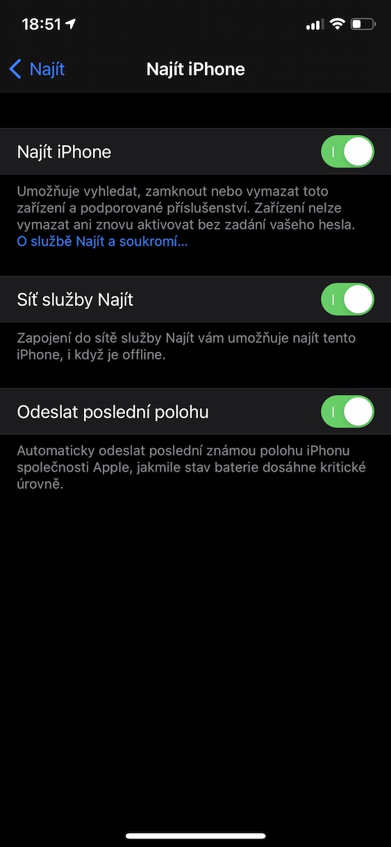 Součástí jablečných systémů je aplikace Najít, v rámci které můžete sledovat polohu lidí, zařízení a předmětů. Mnoho uživatelů bere tuto aplikaci, co se týče sledování lidí, svým způsobem za šmírovací. Upřímně ale takovým uživatelům úplně nerozumím, protože sdílení polohy neznamená, že vás ostatní uživatelé automaticky šmírují. Osobně sdílím navzájem polohu s rodinou a blízkými přáteli především pro zjednodušení života. Pokud někde máme sraz, nemusíme se ptát, kde kdo je, a po dostavení se do cíle nemusíte pořád myslet na to, abyste svou polovičku informovali o tom, že jste dojeli v pořádku. A v neposlední řadě vám dokáže sdílení polohy zachránit život například pokud se ztratíte, anebo pokud nedejbože dojde k něčemu horšímu. Sdílení polohy zapnete v Nastavení → váš profil → Najít → Najít iPhone.