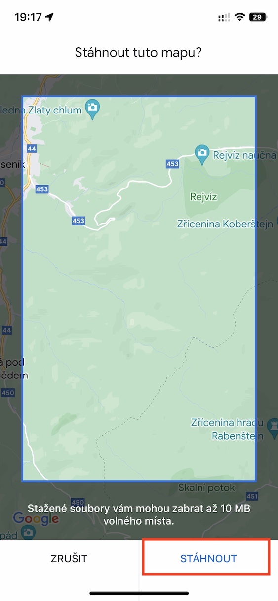 Kromě toho, že můžete v offline režimu využít aplikaci Kompas, tak byste měli vědět o tom, že je takto možné používat i Google Maps. V tomto případě je ale nutné, abyste se předem připravili na místě, kde je k dispozici připojení k internetu. Do aplikace Google Maps je totiž možné stáhnout mapy pro offline použití, a to předem vybrané oblasti. Pro stažení klepněte vpravo nahoře v aplikaci na váš profil, a poté přejděte do Offline mapy. Zde pak stačí klepnout na Vyberte svou vlastní mapu, vybrat si oblast a klepnout na Stáhnout.