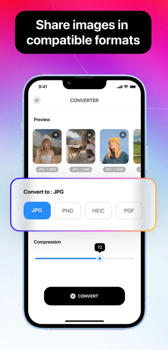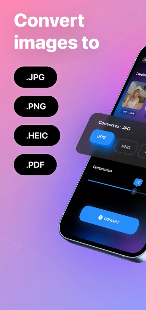 S pomocí aplikace Image Converter můžete snadno převádět své fotografie do formátu JPG, PNG, HEIC nebo třeba PDF během okamžiku! Tato aplikace je navržena tak, aby vám pomohla převést vaše fotografie do různých obrazových formátů. Mezi podporované výstupní formáty patří JPG, PNG, HEIC a PDF.