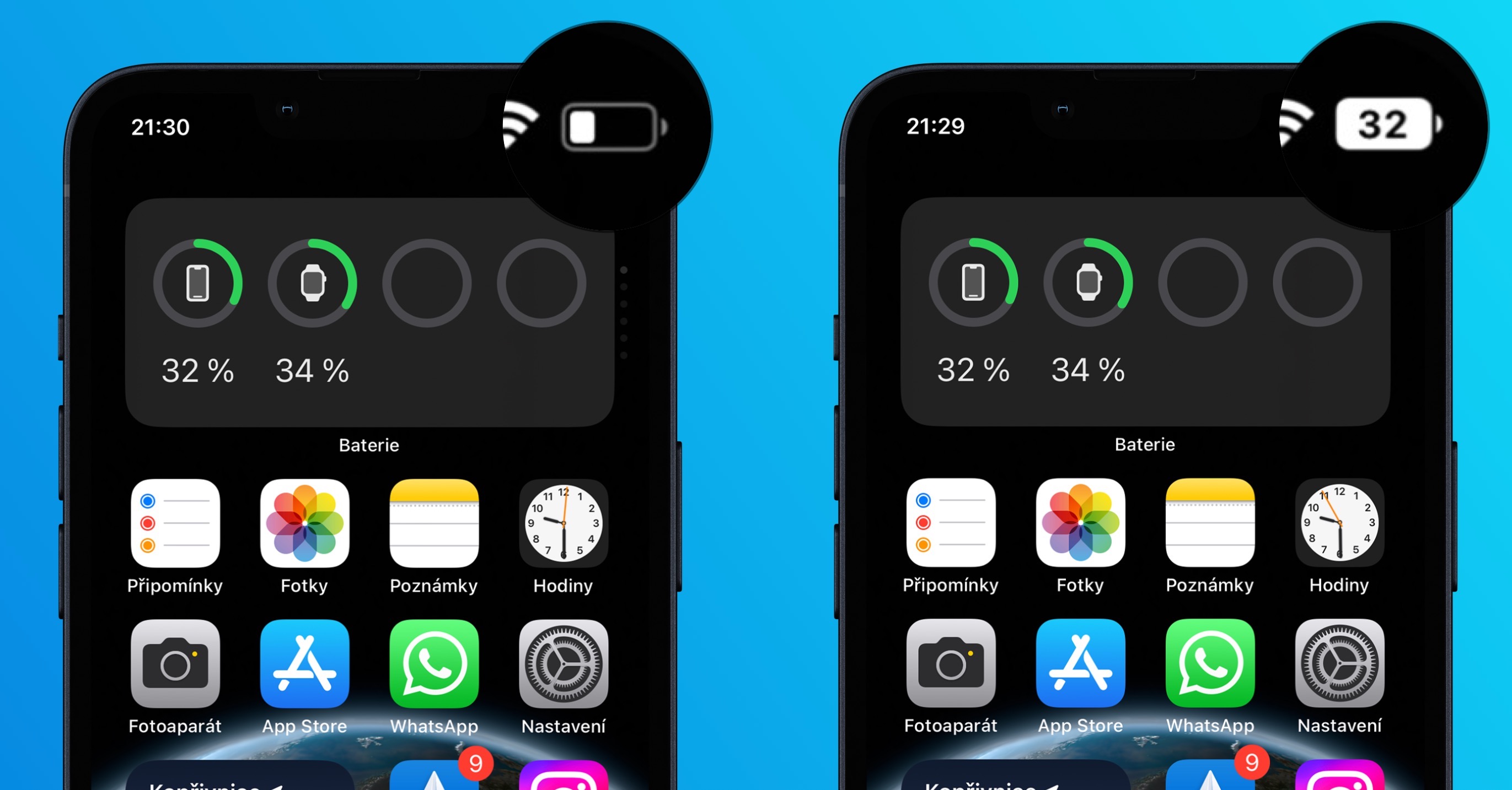 iOS 16: Jak zobrazit v horní liště procentuální stav baterie