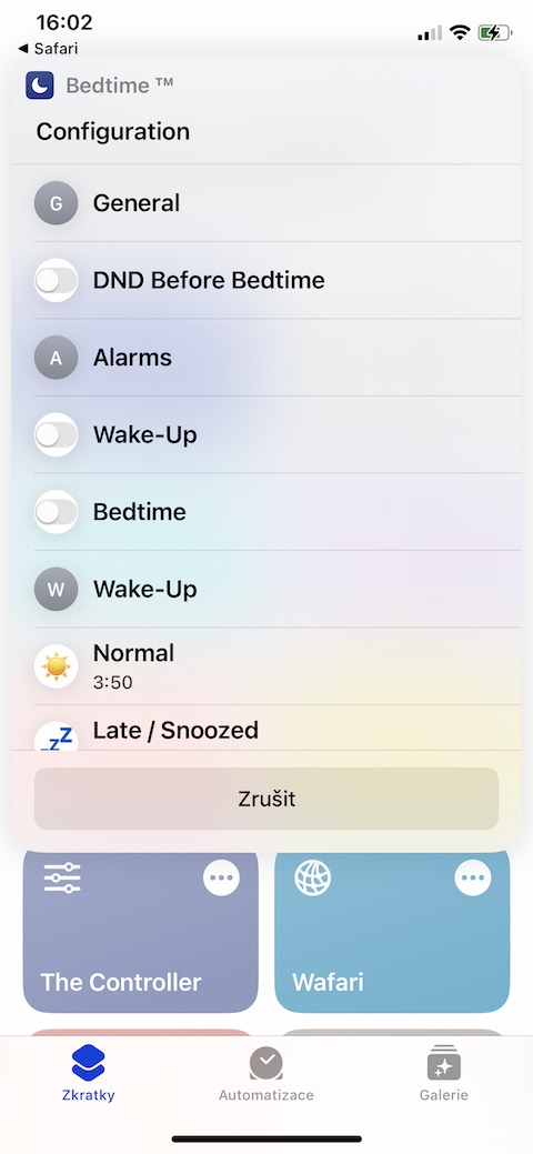 Zkratka s názvem Bedtime vám pomůže se záznamem a správou aktivit, souvisejících se spánkem, jeho sledováním a buzením. Bedtime vám umožní a usnadní správu budíků, nabídne funkci záznamů detailů o vašem spánku a nabízí také bohaté možnosti přizpůsobení.