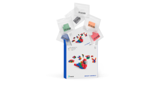 Pixio jsou magnetické stavebnice, určené dětem od šesti let. Jedná se o stavebnice, tvořené malými barevnými magnetickými bloky, které můžete libovolně kombinovat, a které jsou navíc vzájemně kompatibilní. Hotové výrobky lze připevnit na kovové plochy, jako je například povrch ledničky nebo třeba magnetická tabule. Stavět můžete podle návodů, které jsou přiložené v každém balení stavebnice Pixio, podle interaktivních aplikací v chytrých telefonech (aplikace jsou k dispozici jak pro iOS, tak i pro Android), nebo zkrátka podle vlastní fantazie. Stavění z kostek Pixio rozvíjí nejen jemnou motoriku a kreativitu, ale také logické myšlení.