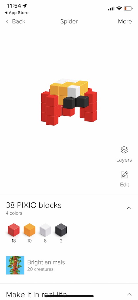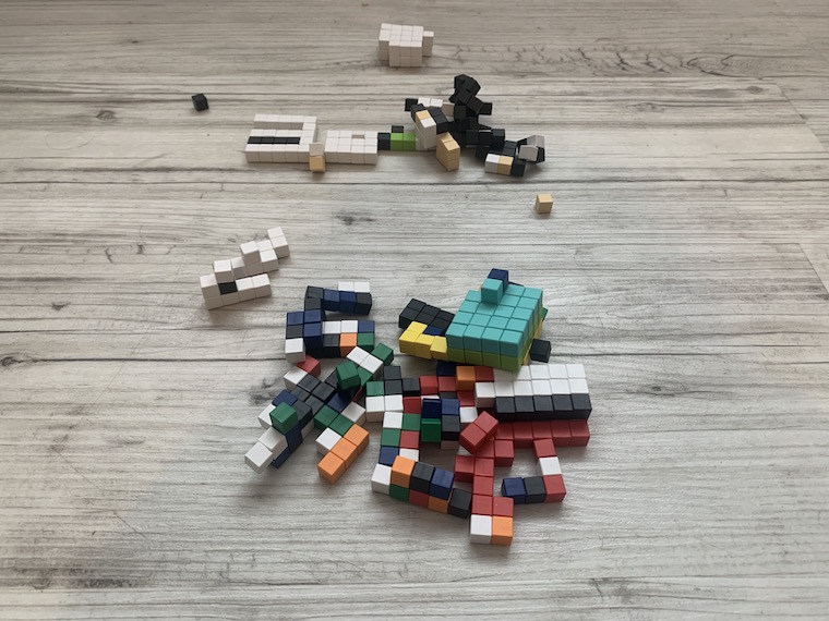 Jak už jsem zmínila v úvodním odstavci, stavebnice Pixio je kvůli velmi drobným rozměrům jednotlivých bloků vhodná spíše pro školní děti. Ty si s ní rozhodně vyhrají dosytosti, a Pixio má potenciál zabavit i dospělé. Pixio skýtá opravdu bohaté možnosti tvorby, a navzdory názvu jsme se při zkoušení neomezovali jen na zvířátka. Než si pořádně osvojíte principy, postupy a vhodné otáčení jednotlivých bloků pro 3D stavby, můžete stavebnici využít třeba k vytváření jednovrstvých obrázků ve stylu Pixel Art. Hranaté bloky doslova svádí také ke stavění postav, předmětů a prvků z Minecraftu. Se samotnými bloky se pracuje velmi příjemně. Musím vyzdvihnout i příslušnou aplikaci, kterou stáhnete po načtení QR kódu z návodu v balení. Aplikace totiž nabízí opravdu pestrou paletu návodů na stavění, přičemž jednotlivé stavby jsou rozdělené podle náročnosti, bloků nebo modelu stavebnice. Poté, co si vyberete stavbu, je už jen na vás, zda se do ní pustíte čistě na základě obrázku, nebo zda si budete chtít podrobně a ze všech stran prohlédnout její interaktivní model. Aplikace umožňuje otáčení modelu i jeho virtuální rozebrání na jednotlivé vrstvy, takže budete přesně vědět, jak máte postupovat.