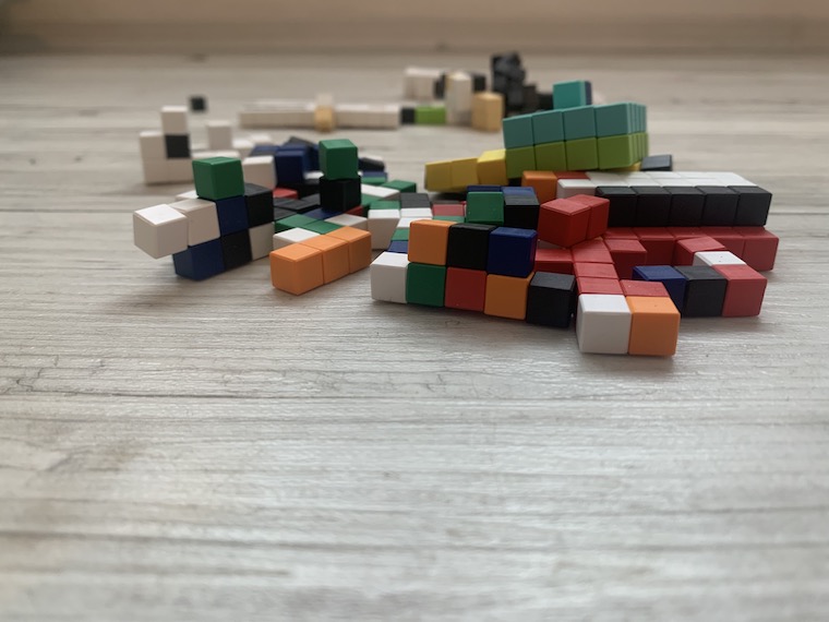 Stavebnice Pixio jsou balené v jednoduchých, prostorově úsporných krabičkách, které ale vypadají velmi hezky. Každá stavebnice sestává ze série různě barevných bloků, přičemž každá barva je v krabičce zabalená zvlášť v odolném plastovém sáčku – kdo má rád pořádek a přehled, může si tedy vždy po hraní se stavebnicí jednotlivé barevné bloky opět přehledně roztřídit. Součástí balení je dále také návod s inspiracemi na stavění a kódem ke stažení aplikace, podle které můžete také stavět. Aplikaci se budeme věnovat v další části článku. Stavebnice jako taková je zpracovaná opravdu velmi pěkně, a vysoká kvalita je znát na první pohled i na dotek. Bloky jsou hezky vybarvené, pohromadě drží opravdu spolehlivě.