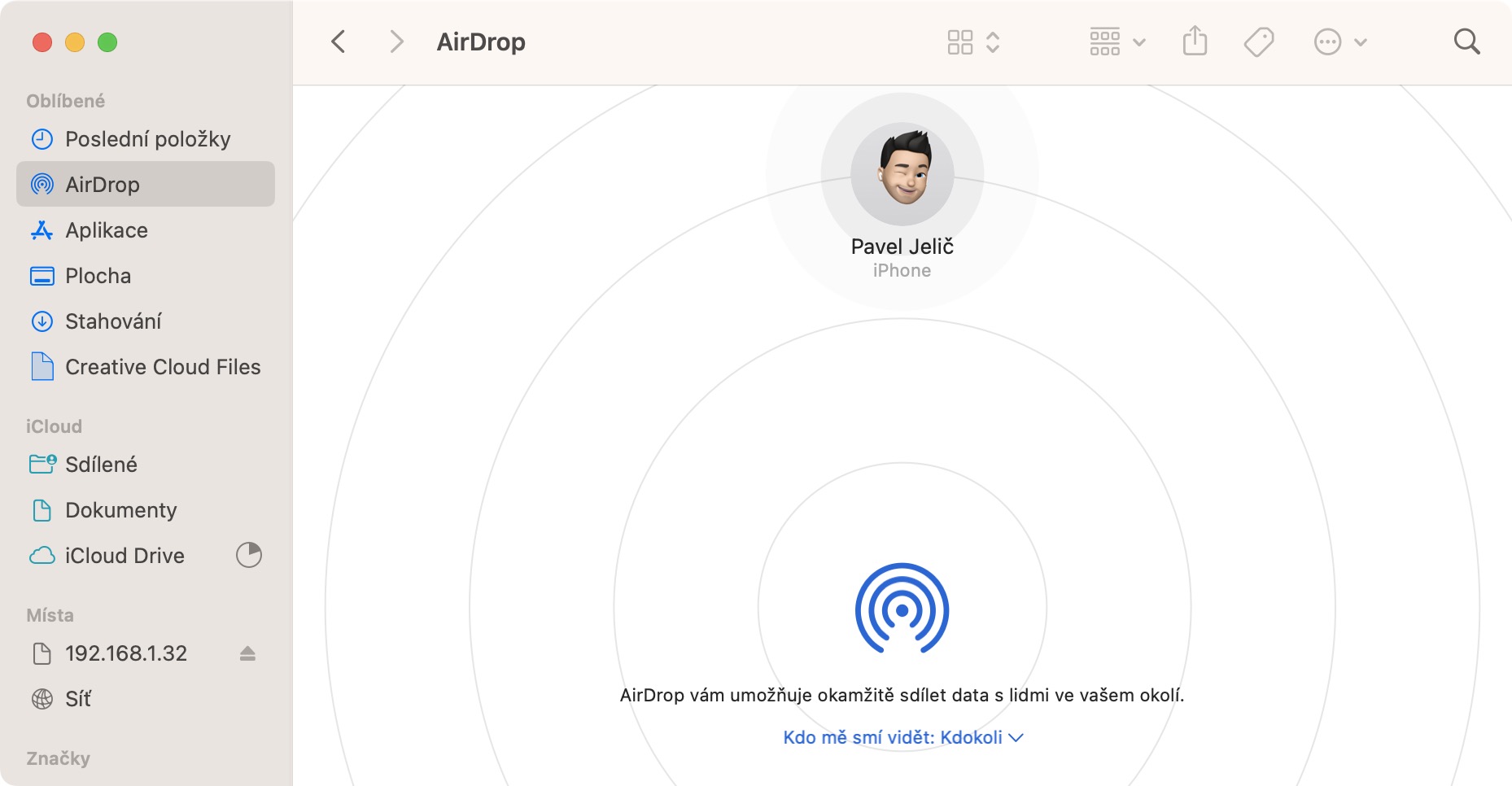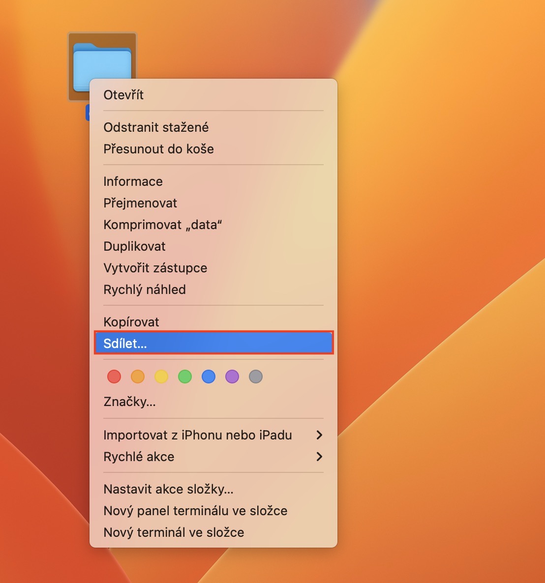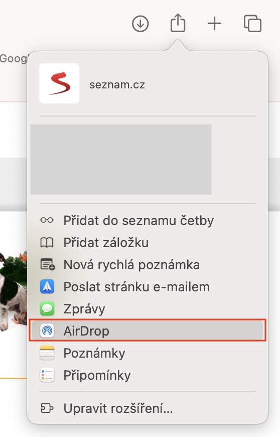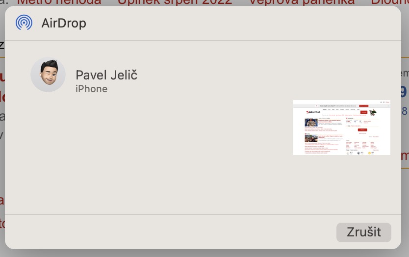 Dalším způsobem, který je jeden z nejvíce využívaných, je skrze menu Sdílení. To znamená, že si v Macu najděte a označte soubory, které chcete skrze AirDrop sdílet. Jakmile tak učiníte, tak na označená data klepněte pravým tlačítkem, čímž se objeví menu. V rámci tohoto menu pak klepněte kurzorem na řádek Sdílet… Tímto se otevře nové okno sdílení, ve kterém už jen stiskněte AirDrop, a poté si vyberte, komu chcete obsah sdílet.