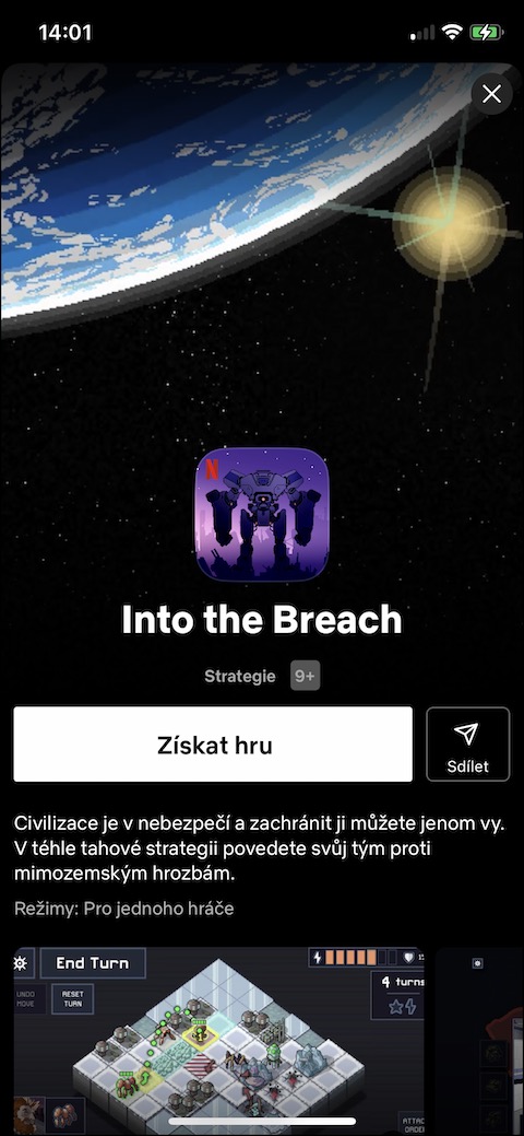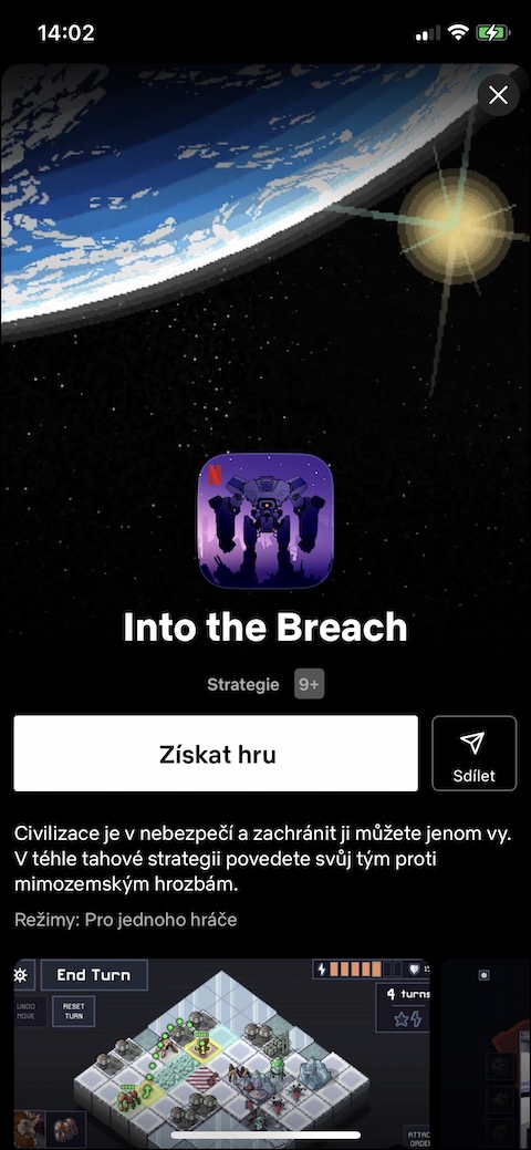 Hry Netflix lze hrát prostřednictvím samotné mobilní aplikace Netflix. Stačí otevřít aplikaci a přejít do sekce her, vybrat si některou, která vás zajímá, a užít si hraní. Mějte však na paměti, že jsou k dispozici pouze v mobilní aplikaci. Na iPhonu spusťte Netflix a na hlavní obrazovce se posouvejte dolů, dokud nenarazíte na kategorii Hry. Klepněte na titul, který vás zaujal, a na stránce titulu klepněte na Získat hru. Následně stačí jen potvrdit přechod do App Storu, kde si už hru můžete bez problémů stáhnout do vašeho iPhonu.