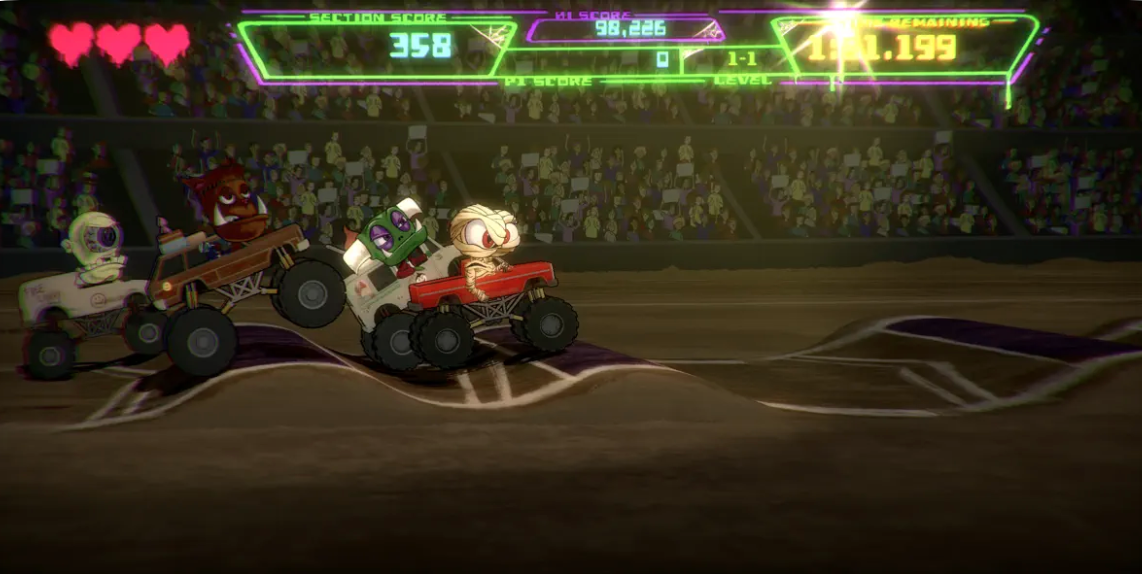 Nepovedená invaze příšerek se změní v bouřlivý road trip životem na Zemi. Vyberte si ze pestré palety roztodivných příšerek a tuny příšerných náklaďáků a vydejte se s nimi na tuto doslova bouřlivou plavbu krajinou! Zkraťte si dlouhou chvíli touto originální závodní hrou, při které se rozhodně nebudete nudit.