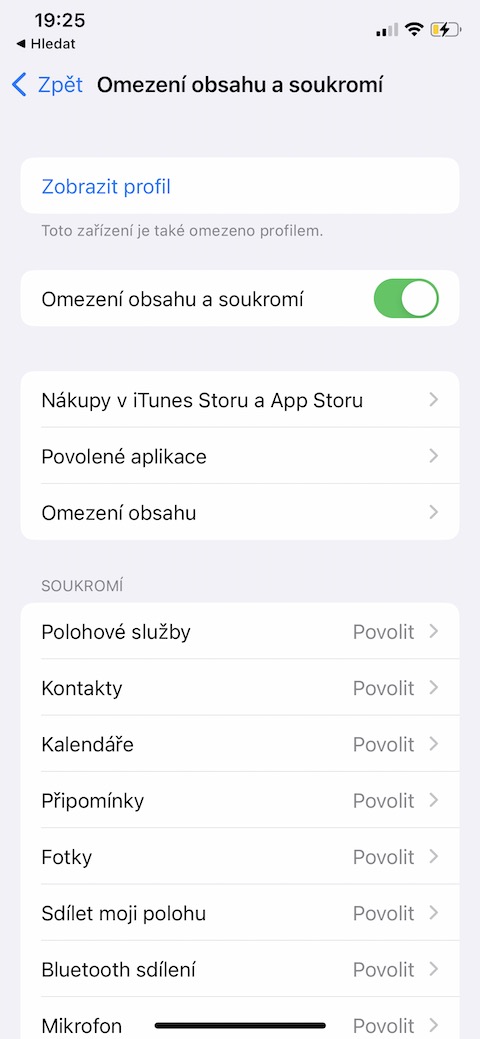 Tato příčina je sice u většiny dospělých uživatelů nepravděpodobná. Pokud ale na svém zařízení například vůbec nenacházíte App Store, vyzkoušejte tento postup.. Na iPhonu spusťte Nastavení -> Čas u obrazovky -> Omezení obsahu a soukromí, a ujistěte se, že nemáte v sekci Nákupy v iTunes Storu a App Storu zakázanou instalaci aplikací.