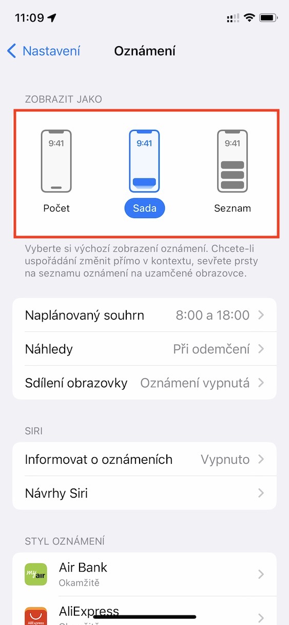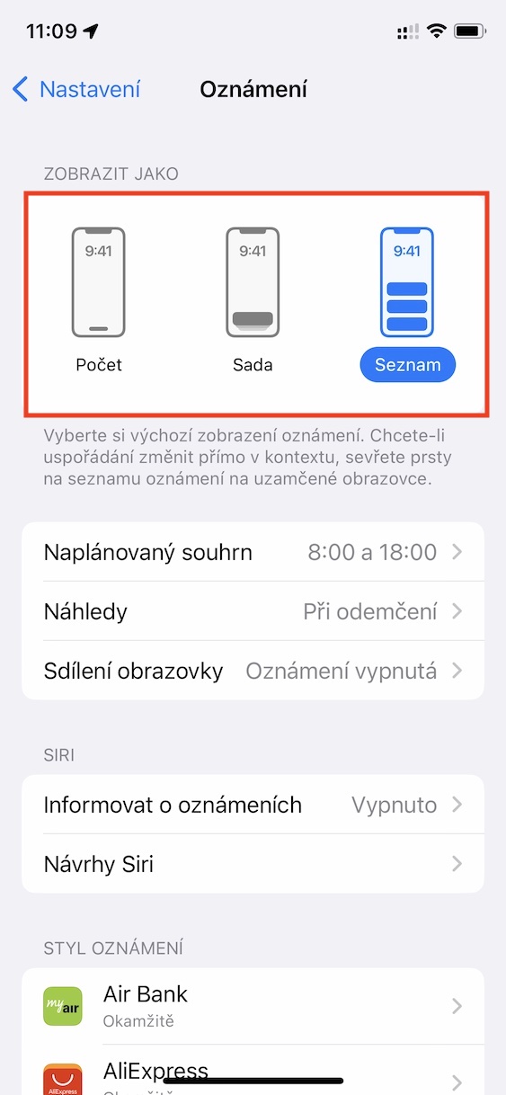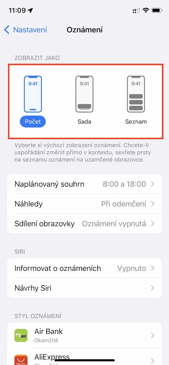 Na našem magazínu jsme si již ukázali, jakým způsobem můžete alespoň částečně vrátit původní způsob zobrazování oznámení na zamknuté obrazovce, kdy se sice notifikace budou stále řadit odspoda nahoru, ale už se nebudou shromažďovat, nýbrž klasicky zobrazovat v seznamu – více informací vám prozradí tento článek. Apple však s příchodem iOS 16 zpřístupnil celkově tři způsoby zobrazení notifikací. Mnoho uživatelů nemá tušení, jaký je vlastně mezi jednotlivými zobrazeními rozdíl, a proto si společně v tomto článku ukážeme rozdíly a vysvětlíme funkčnost. Na konec tohoto odstavce zmíním, že způsob zobrazení oznámení lze změnit v Nastavení → Oznámení, hned nahoře v kategorii Zobrazit jako.