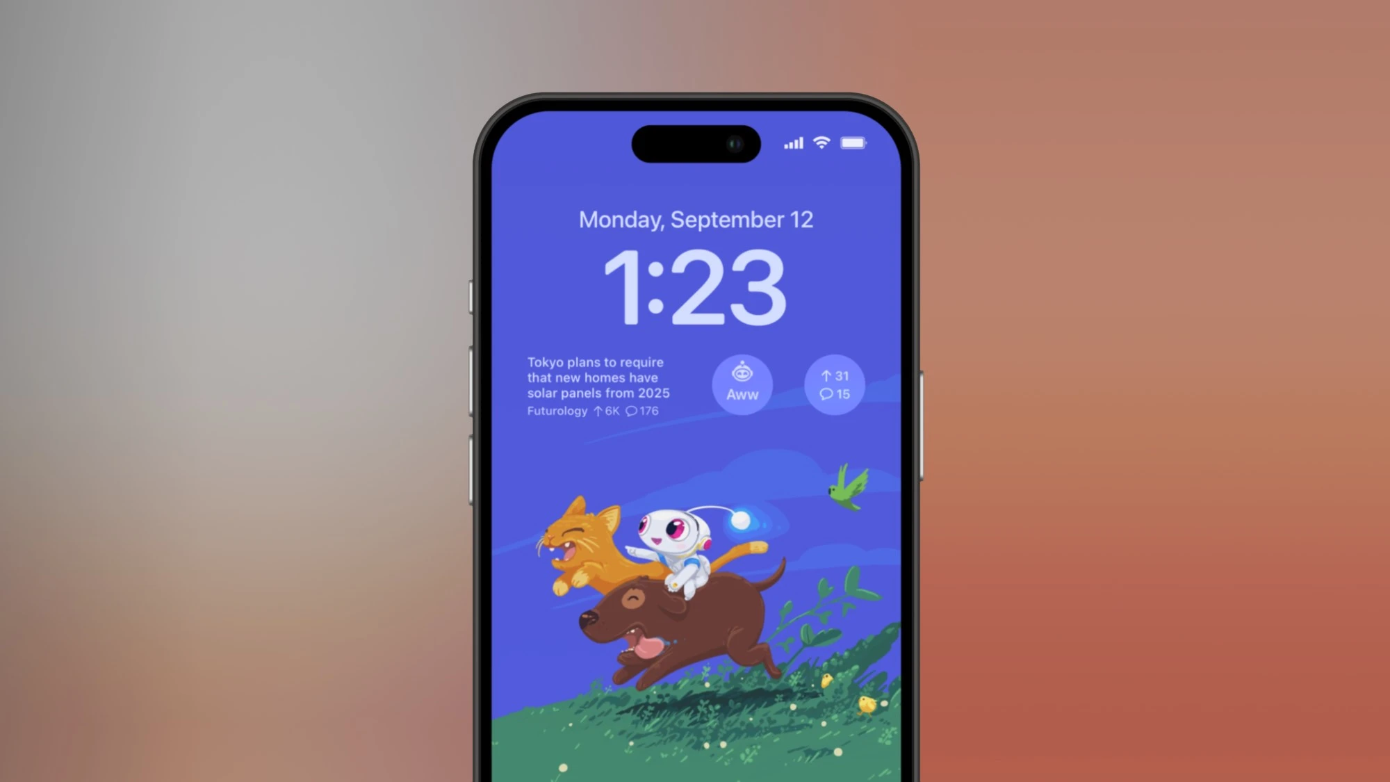 - Apollo for Reddit – zobrazí widgety spojené s aplikací Reddit, tj. např. trendy příspěvky apod.