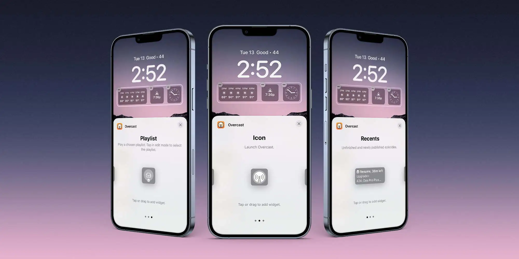 - Overcast – nabízí rychlé ovládání aplikace Overcast