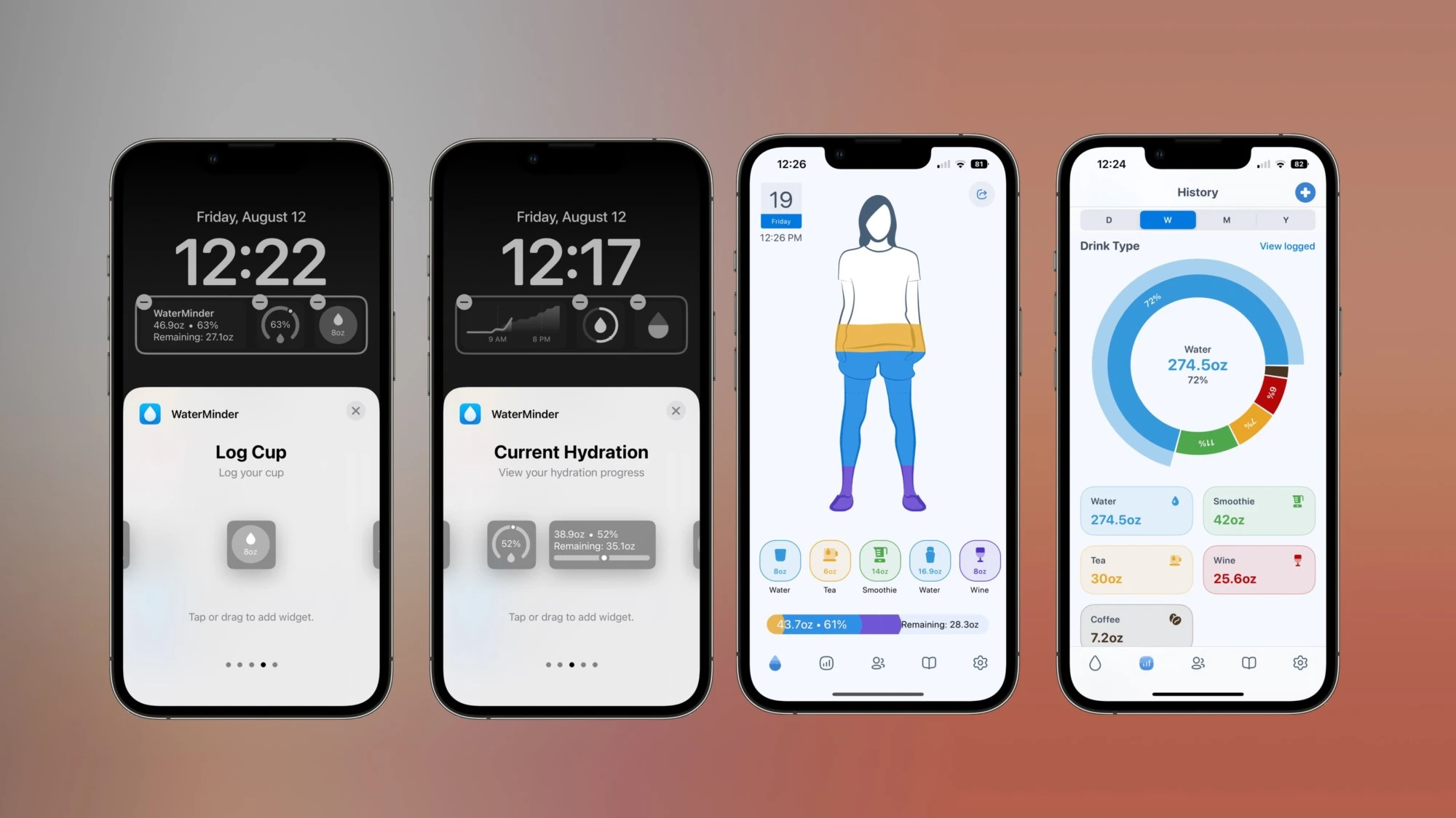 - WaterMinder – připomínky pro pití vody, možnost pro rychlé zaznamenání vypité vody