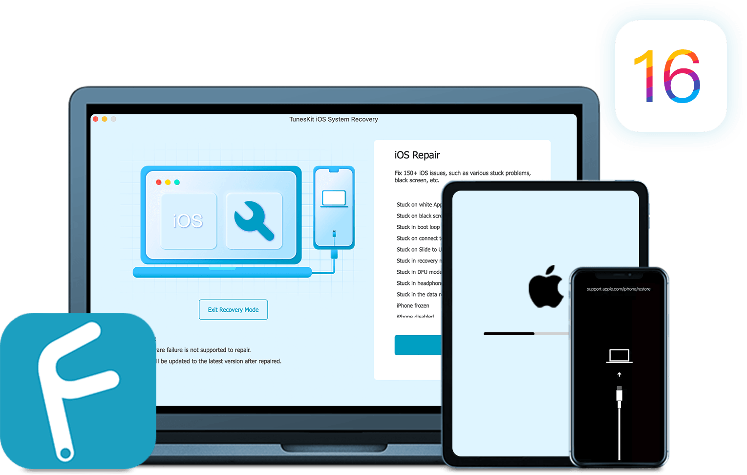 Aplikace TunesKit iOS System Recovery slouží pro opravu chyb spojených s poškozením operačního systému. Konkrétně dokáže řešit případy, kdy jste zaseknutí na obrazovce s Apple logem, máte zamrznutou, zamčenou, bílou, modrou či zelenou obrazovku, když se vám iPhone neustále restartuje, když selže proces obnovy či při nefunkčním DFU režimu. Jedná se tedy o multifunkční nástroj, který dokáže řešit závažné problémy. To nejzásadnější však je, že si s tím poradí bez ztráty dat. A přesně tohle platí i v našem konkrétním případě.