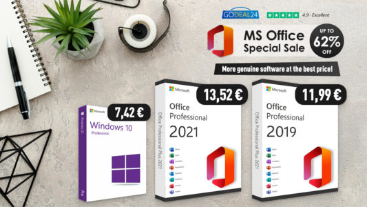 - MS Office 2021 Pro Plus / 5 PCs – 67.63€ (13.52€/PC)