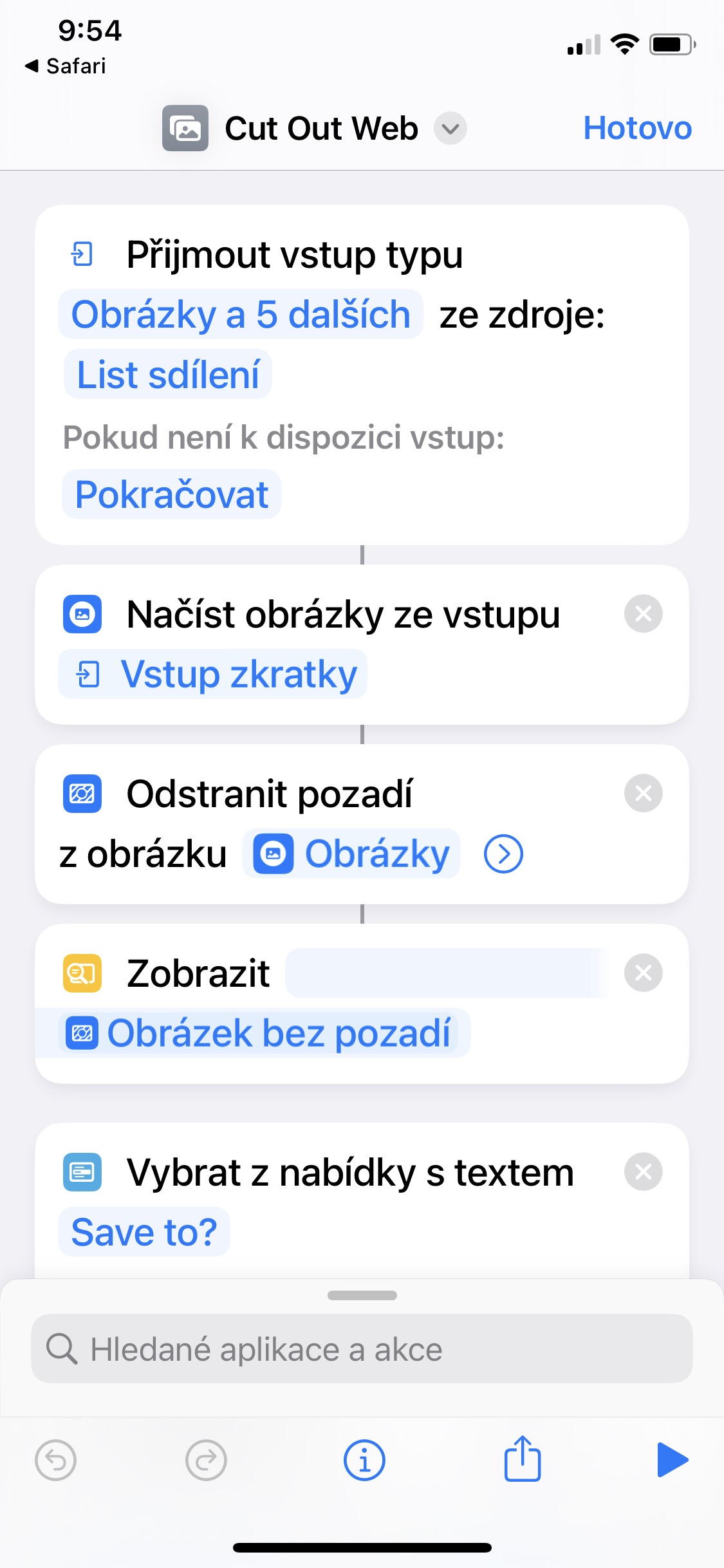 Velice užitečná zkratka s názvem Cut out Web vám umožní prakticky na jakékoliv webové stránce vybrat fotografii, která vás nějakým způsobem zaujala, a po aktivaci zkratky z listu sdílení z této fotografie zkratka okamžitě a automaticky odstraní pozadí a v závislosti na vaší volbě výslednou fotografii uloží do fotogalerie vašeho iPhonu, do nativních Souborů nebo na jiné vybrané úložiště.