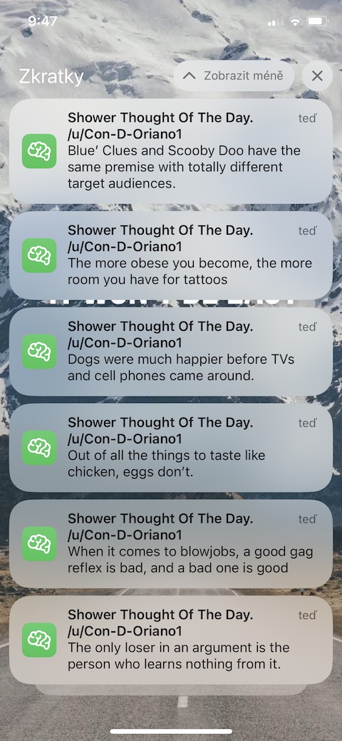 Zkratka s názvem Shower Thought of the Day vám po svém spuštění naservíruje dostatek zajímavých témat k zamyšlení nejen ve sprše. Stačí zadat počet vět, které chcete, aby vám zkratka vygenerovala, a můžete se začít kreativně a filozoficky zamýšlet nad danými tématy.