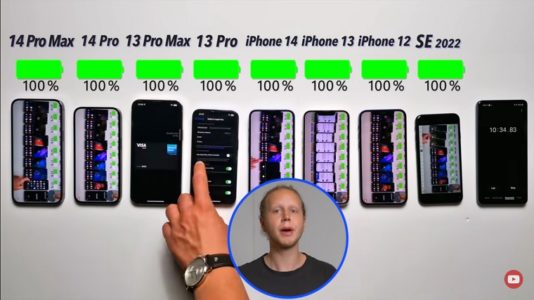 Jedním z nejzásadnějších aspektů u smartphonů je dnes bez diskuze výdrž na jedno nabití. Každý rok máme u nových vlajkových modelů o něco lepší čip, fotoaparát a tak podobně. Ovšem výdrž baterie bývá upozaděna, přitom je to vlastnost, která by rozhodně zasloužila zlepšení. U iPhonů platí, že skvělou výdrží baterie se pyšní především řada „Max“, ale také klasické modely mají slušnou výdrž na jedno nabití. V testu pod odstavcem se můžete podívat na velmi zajímavý test výdrže, v němž se utká iPhone 14 Pro/Pro Max, 13 Pro/Pro Max, 14, 13, 12 a SE. Jak je asi všem jasné, z testu vzešel jako vítěz iPhone 14 Pro Max, kterému sekundoval iPhone 13 Pro Max. Nejnovější iPhone má čip A16 Bionic vyroben 4nm technologií, tedy se logicky od něj čeká o něco vyšší úspora energie. V praxi se ale o ohromný skok nejedná, neboť si můžeme všimnou, že jakmile se loňský model vybije, má 14 Pro Max ještě 12 % baterie. Test je vložen pod odstavcem.
