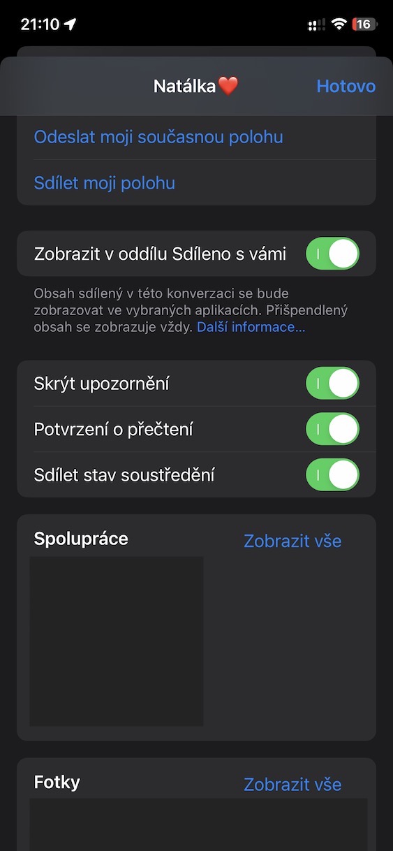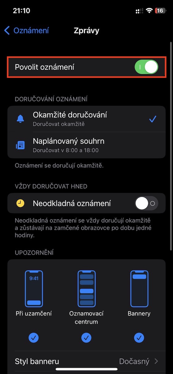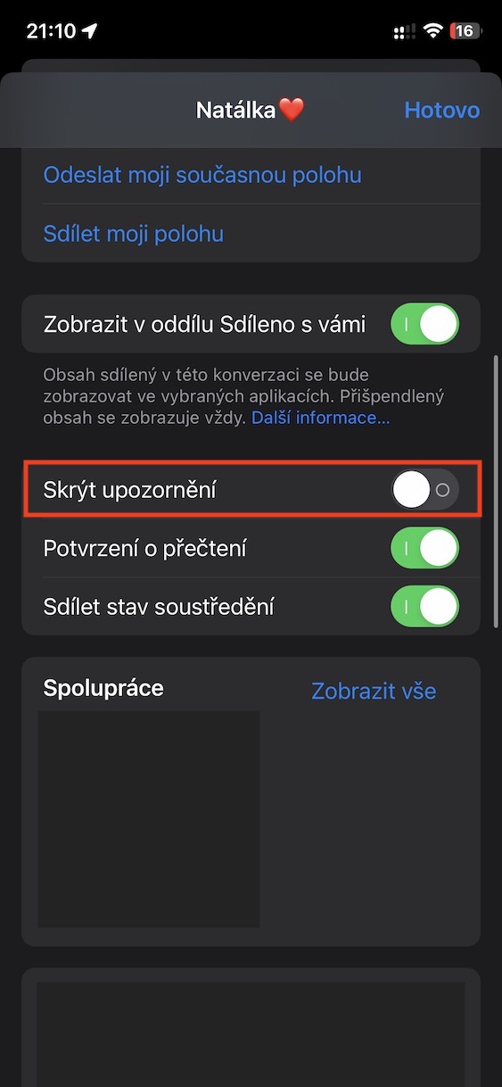 Na předchozí stránce jsme si ukázali, jakým způsobem je možné nechat skrýt náhledy oznámení. Pokud vám však tohle nedostačuje a chtěli byste, aby se oznámení ze Zpráv vůbec nezobrazovala, tak samozřejmě i tohle můžete nastavit. Stačí, abyste přešli do Nastavení → Obecné → Zprávy, kde deaktivujte Povolit oznámení. Popřípadě můžete oznámení ztišit jen u vybraného kontaktu, stačí přejít do Zpráv, kde jej otevřete, poté na něj nahoře klepněte a nakonec aktivujte funkci Skrýt upozornění.