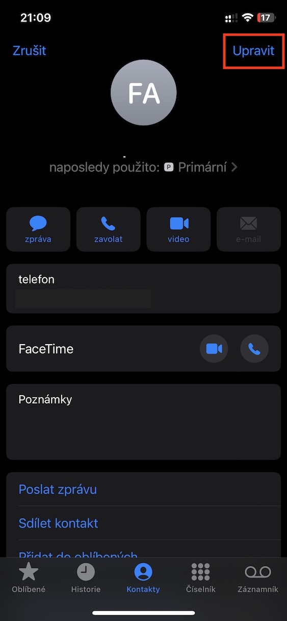 Prvním a naprosto základním tipem, který můžete využít, je změna jména kontaktu, se kterým komunikujete. V případě, že dotyčné osobě nastavíte jiné jméno, tak o tom nebude vědět nikdo jiný, než vy. I po otevření konverzace navíc nemusí být na první pohled poznat, s kým vlastně komunikujete. Pro změnu jména kontaktu přejděte do kontaktů, kde si ten konkrétní najděte a otevřete. Pak stačí vpravo nahoře klepnout na Upravit, následně jméno změnit a potvrdit změny klepnutím na Hotovo vpravo nahoře.