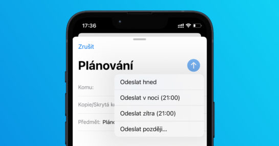 Mezi jednu z hlavních novinek, které jsou k dispozici v nativní aplikaci Mail, patří možnost pro naplánování odeslání e-mailu. Díky této funkci si jednoduše nastavíte odeslání e-mailu v budoucí nastavený čas a datum. Využít tohle můžete například tehdy, pokud na e-maily odpovídáte pozdě večer či o víkendu a nechcete v tuto dobu nikoho rušit. Tato funkce je v konkurenčních e-mailových klientech k dispozici již opravdu dlouhou dobu, takže v případě Mailu rozhodně bylo načase. Pro využití postupujte následovně: