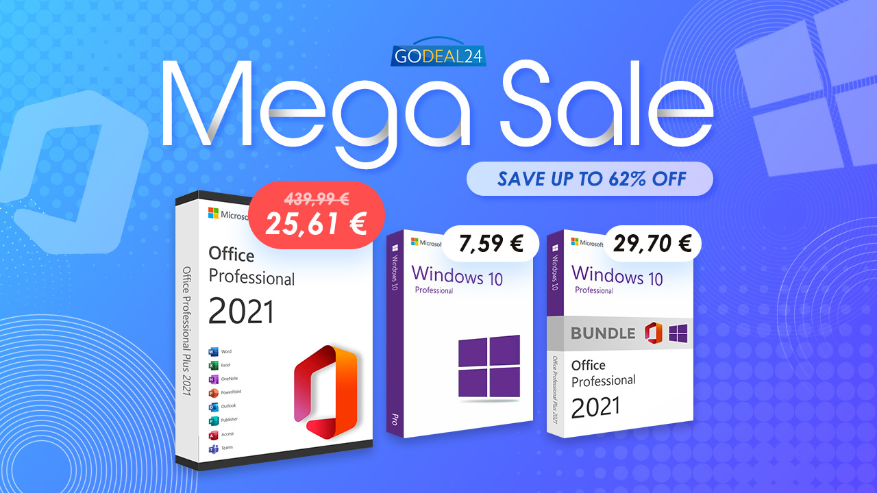 - Windows 10 Pro + Office 2021 Pro Plus – Bundle – 29.70€