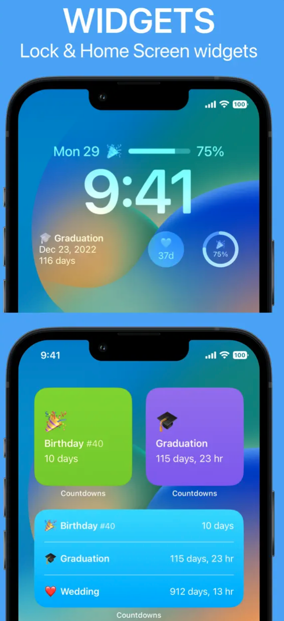 Pokud vás spíše než schůzky a úkoly na daný den zajímá to, kolik času zbývá do Vánoc, Halloweenu, vašich narozenin, výročí svatby nebo třeba do vysněné dovolené, bude pro vás tou pravou aplikace s názvem Countdowns –Event Day Counter. Ta nyní navíc nabízí také podporu widgetů pro zamčenou obrazovku iPhonu, takže o blížících se událostech budete mít prakticky nepřetržitý a okamžitý přehled.