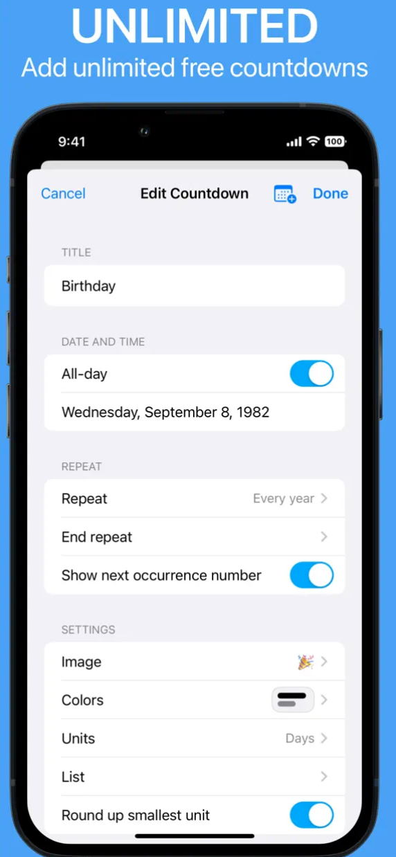Aplikaci Countdowns – Event Day Counter stáhnete bezplatně zde.