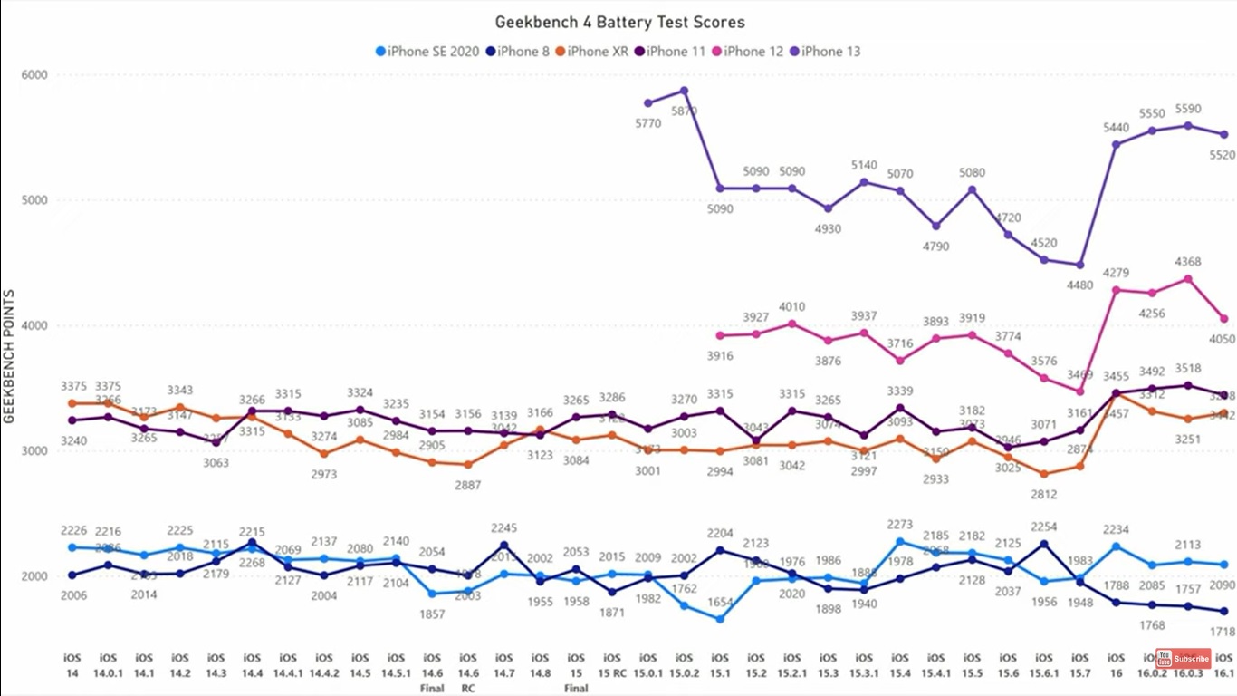 Apple po dlouhém testování vydal začátkem tohoto týdne první větší aktualizaci iOS 16. Běžného uživatele mimo novinek taktéž zajímá, jak se nový systém dotkne například výdrže baterie, neboť z minulosti víme, že i minoritní aktualizace dokáže udělat v tomto směru pěknou neplechu. Na výdrž baterie se jako obvykle podíval kanál iAppleBytes, a to na iPhonech 8, SE 2020, XR, 11, 12, 13 v aplikaci Geekbench 4. Celý test naleznete v odkaze pod tímto odstavcem.