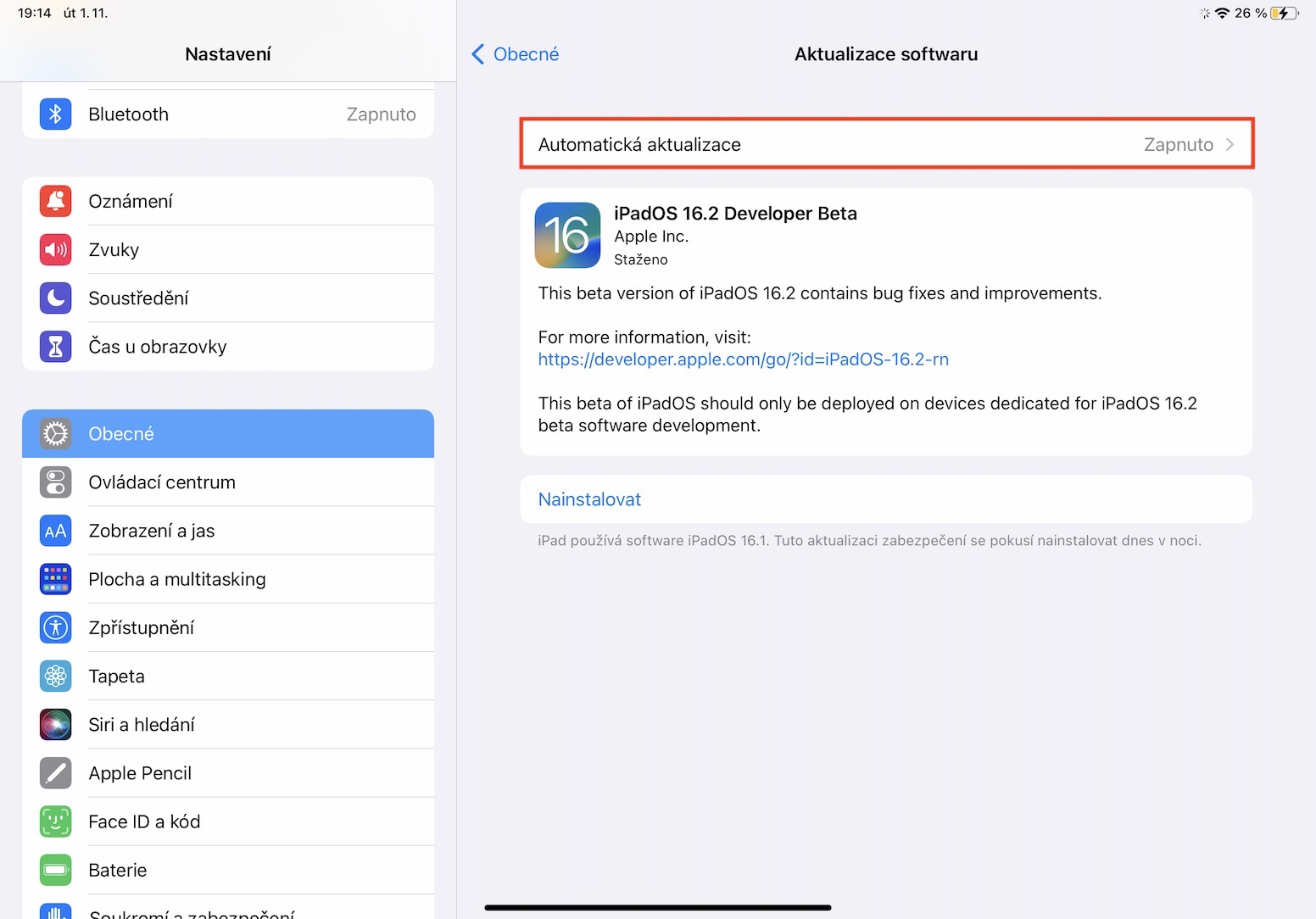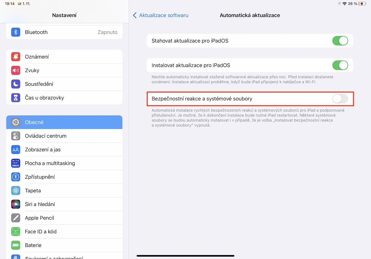 V případě, že Apple v některém ze svých operačních systémů objevil vážnou bezpečnostní chybu, tak její opravu nemohl přinést hned. Doposud totiž byly všechny tyto bezpečnostní opravy součástí kompletních aktualizací systému, na které se muselo čekat. Fakt, že se nejedná o ideální řešení, si Apple konečně uvědomil a v iPadOS 16 nabízí možnost automatických bezpečnostních aktualizací na pozadí. Aktivaci provedete v Nastavení → Obecné → Aktualizace softwaru → Automatická aktualizace, kde přepínačem aktivujte Bezpečnostní reakce a systémové soubory. Následně už se nemusíte o nic starat.