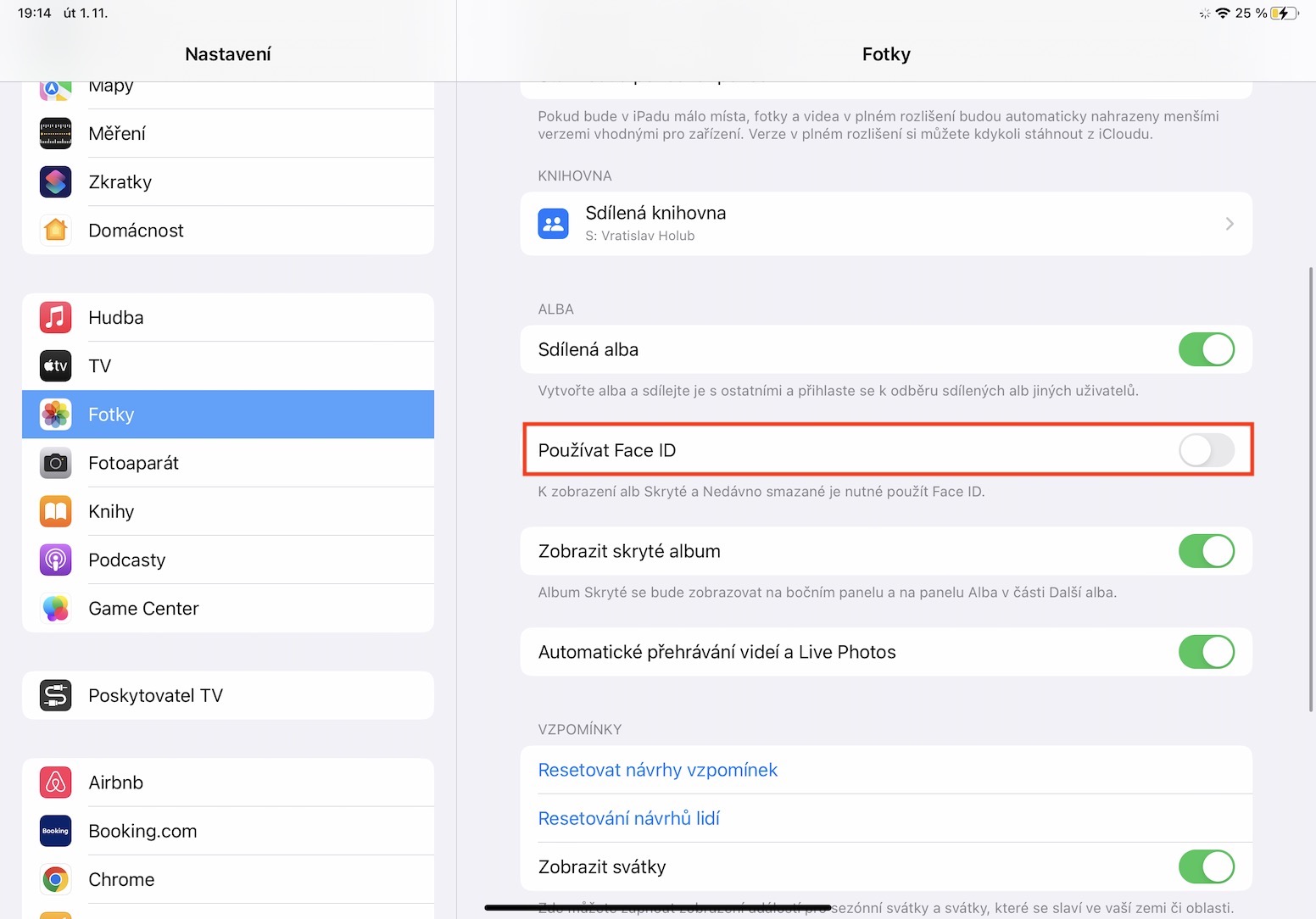 Pokud jste si doposud chtěli uzamknout nějaké fotky či videa, museli jste k tomu využít aplikaci třetí strany, což z hlediska bezpečnosti není úplně ideální. Obsah ve Fotkách bylo konkrétně možné jenom skrýt, což prakticky nic neřešilo. V novém iPadOS 16 už si však skryté fotky a videa můžeme nechat uzamknout prostřednictvím Touch ID nebo Face ID, takže se k nim nikdo nedostane. Pro aktivaci této funkce stačí otevřít Nastavení → Fotky, kde aktivujte Používat Touch ID či Používat Face ID. Pro skrytí a zamknutí fotek je pak stačí otevřít či označit, klepnout na ikonu tří teček a klepnout na Skrýt.