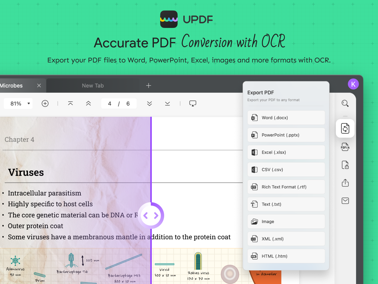 Kromě zmiňovaných úprav si program nadále poradí i s případným převodem PDF dokumentů do DOCX, XLSX, PPTX, obrázkových formátů (PNG, JPEG, BMP, TIFF, GIFF), textu, RTX, HTML, XML, PDF/A a řady dalších. V případě potřeby sdílení v jiném formátu stačí párkrát kliknout a máme tak kompletně hotovo. Export je navíc „okořeněn“ skvělou možností. Nechybí totiž ani OCR neboli technologie pro optické rozpoznávání znaku. V takovém případě dokáže UPDF vytáhnout přímo text i z dokumentů, v nichž je uložen například v podobě obrázku. Technologie rozpozná 40 světových jazyků a z vlastní zkušenosti musím potvrdit, že funguje na výbornou.