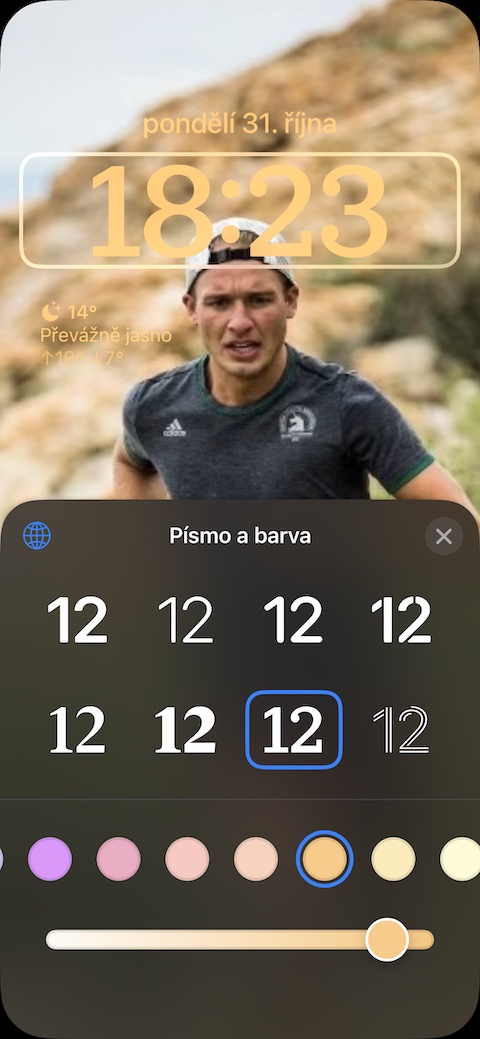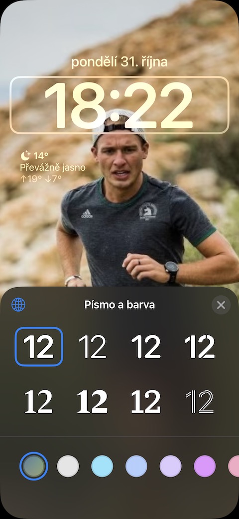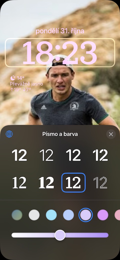 S příchodem iOS 16 si konečně můžete také změnit font a přizpůsobit písmo na zamknuté obrazovce. V režimu přizpůsobení klepněte na pole s údajem o aktuálním čase. Zobrazí se vám panel s nápisem Písmo a barva. Postup je jednoduchý – z ukázek fontů v horní části tohoto panelu vyberte písmo, které se vám nejvíce líbí. To, jak bude vypadat v reálu, si můžete prohlédnout na náhledu zamknuté obrazovky. Ve spodní části panelu pak klepnutím vyberte barvu, a za pomoci posuvníku zcela dole upravte její odstín.