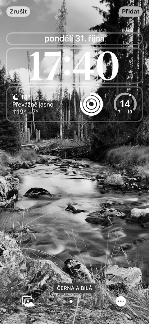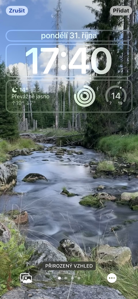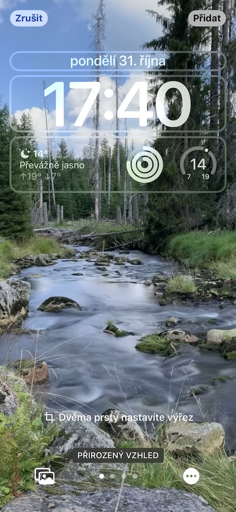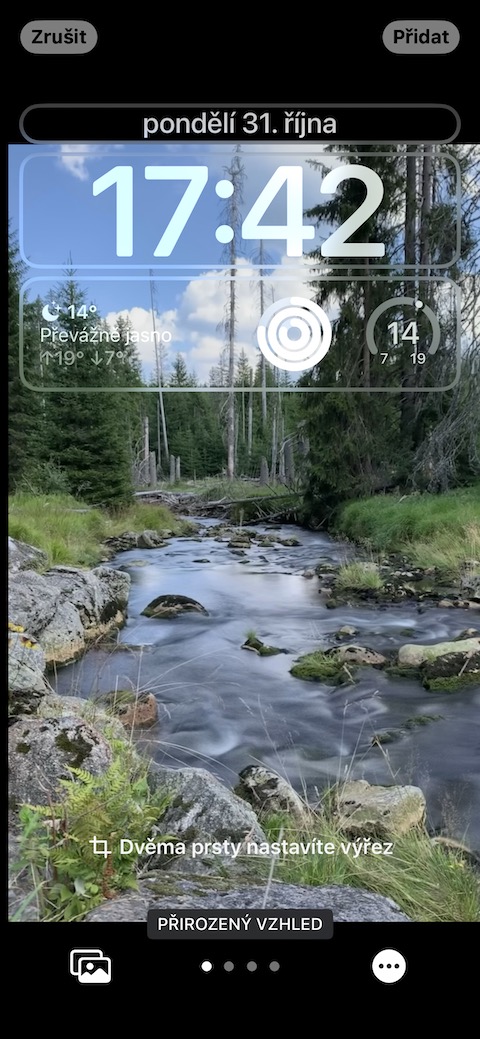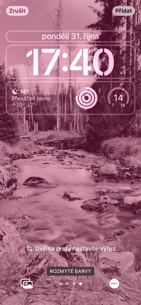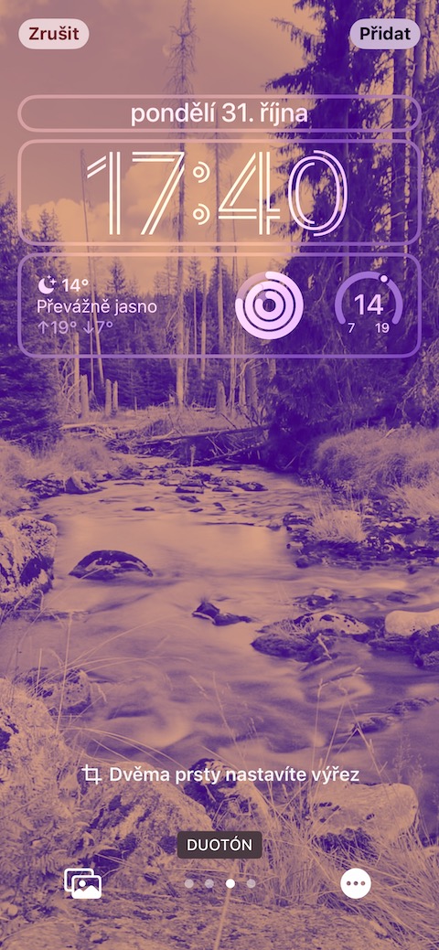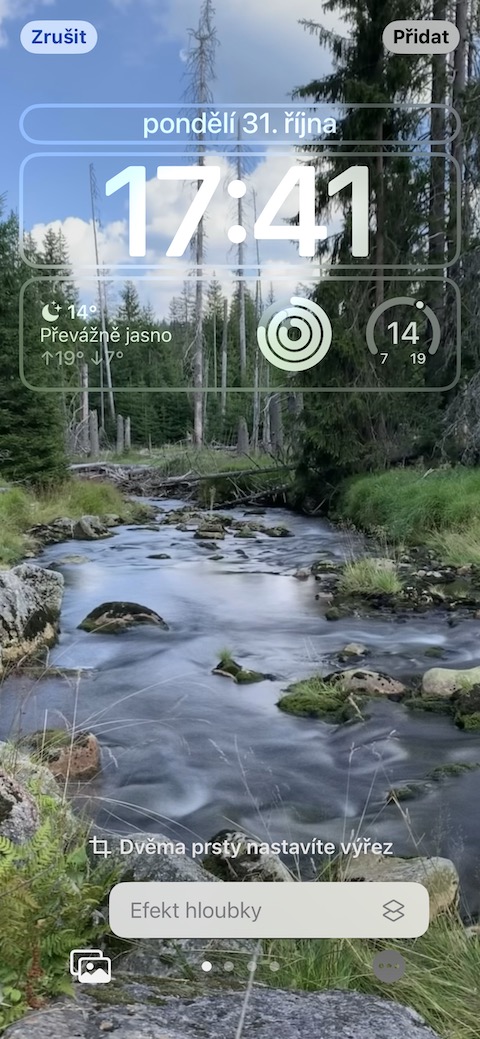 Danou tapetu vyberte tak, že na ni klepnete – nyní se můžete přesunout k přidání widgetů, které si můžete podrobněji prostudovat třeba zde. Pokud jste si vybrali fotografickou tapetu, můžete posouváním do stran nastavit její filtr. Klepnutím na ikonku tří teček v kroužku můžete nastavit efekt hloubky, gestem sevření nebo naopak rozevření dvou prstů nastavíte a přizpůsobíte výřez. Klepnutím na ikonku fotky vlevo dole se přesunete do galerie, kde můžete vybrat jinou tapetu.