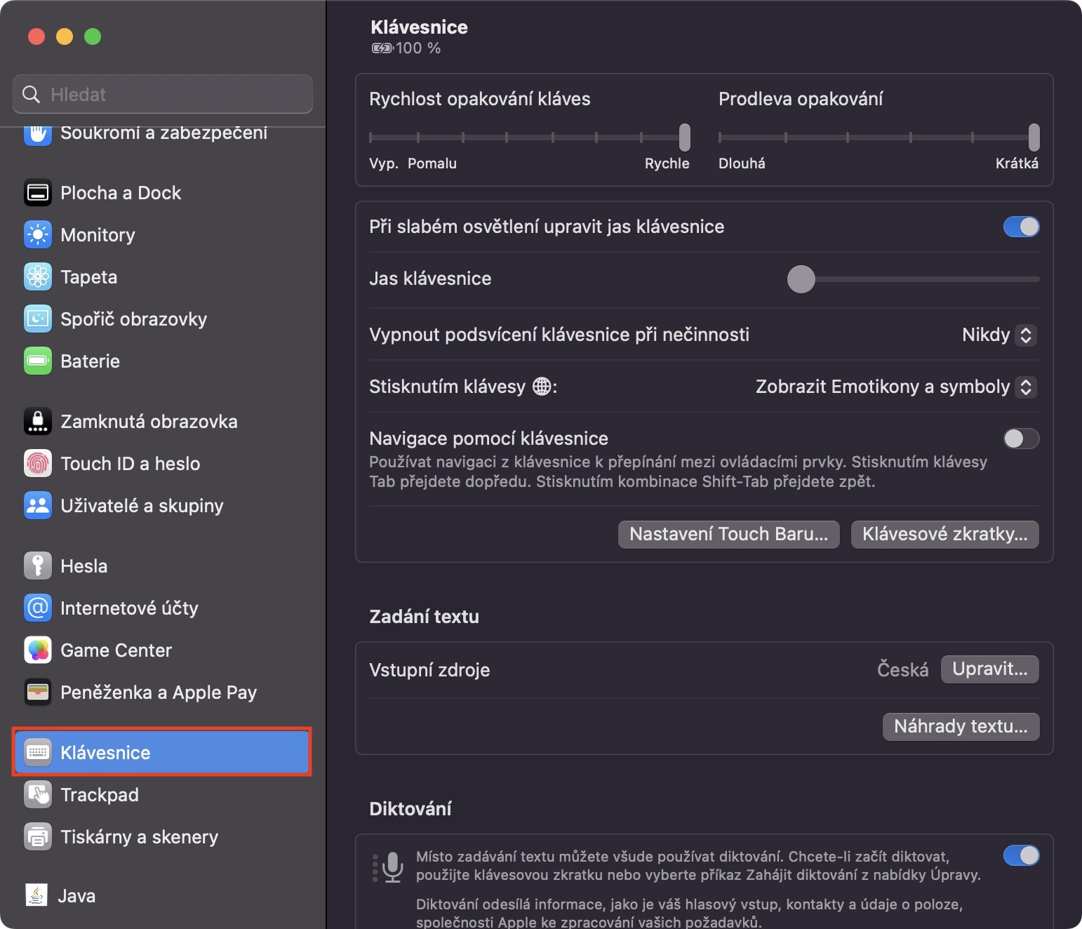 Nedílnou součástí každého MacBooku je také podsvícená klávesnice, kterou si většina uživatelů nemůže vynachválit. I nastavení podsvícení si každopádně v rámci macOS můžete jednoduše přizpůsobit. Stačí přejít do → Nastavení systému… → Klávesnice, kde veškeré předvolby najdete. (De)aktivací Při slabém osvětlení upravit jas klávesnice zapnete nebo vypnete automatické vypnutí podsvícení na světle, v rámci Jas klávesnice lze pak ručně změnit intenzitu podsvícení klávesnice. Klepnutím na Vypnout podsvícení klávesnice při nečinnosti si pak můžete nastavit, po jaké době nečinnosti se má podsvícení automaticky deaktivovat.