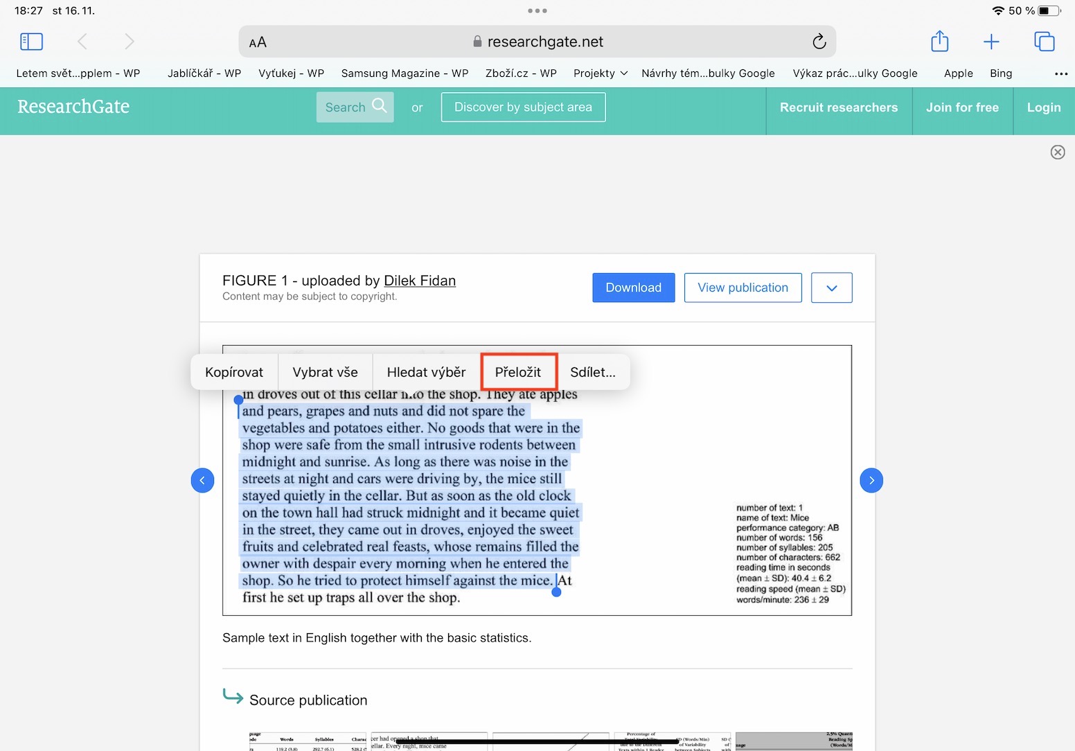 Nejen na iPadu můžeme využívat funkci Živý text, která dokáže převést text z obrázků (a nově i videí) do podoby, ve které s ním můžeme jednoduše pracovat. V novém iPadOS 16 došlo k vylepšení Živého textu, který lze využít také v rámci Safari. Konkrétně v jeho rozhraní můžeme rozpoznaný text jednoduše přeložit, což se může hodit. Nejedná se o nic složitého – stačí text na obrázku prstem označit, a poté v menu, které se zobrazí, stisknout Přeložit. Tímto se otevře rozhraní, kde už lze překlad provést. Bohužel zde ale stále chybí čeština, každopádně pokud často pracujete s angličtinou a dalšími cizími jazyky, bude se vám tato funkce hodit.