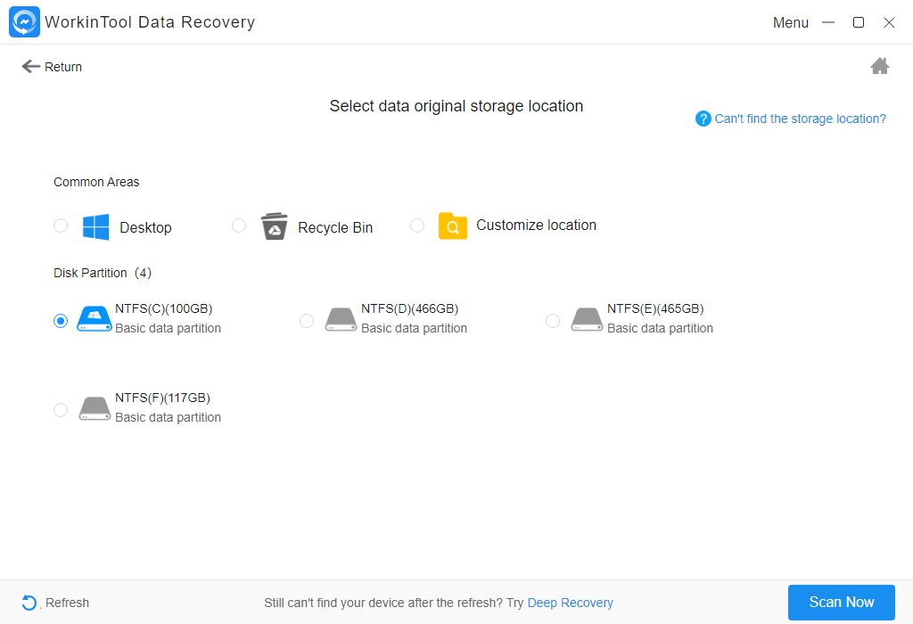 - První metoda: Získejte odstraněné Outlook složky s WorkinTool Data Recovery